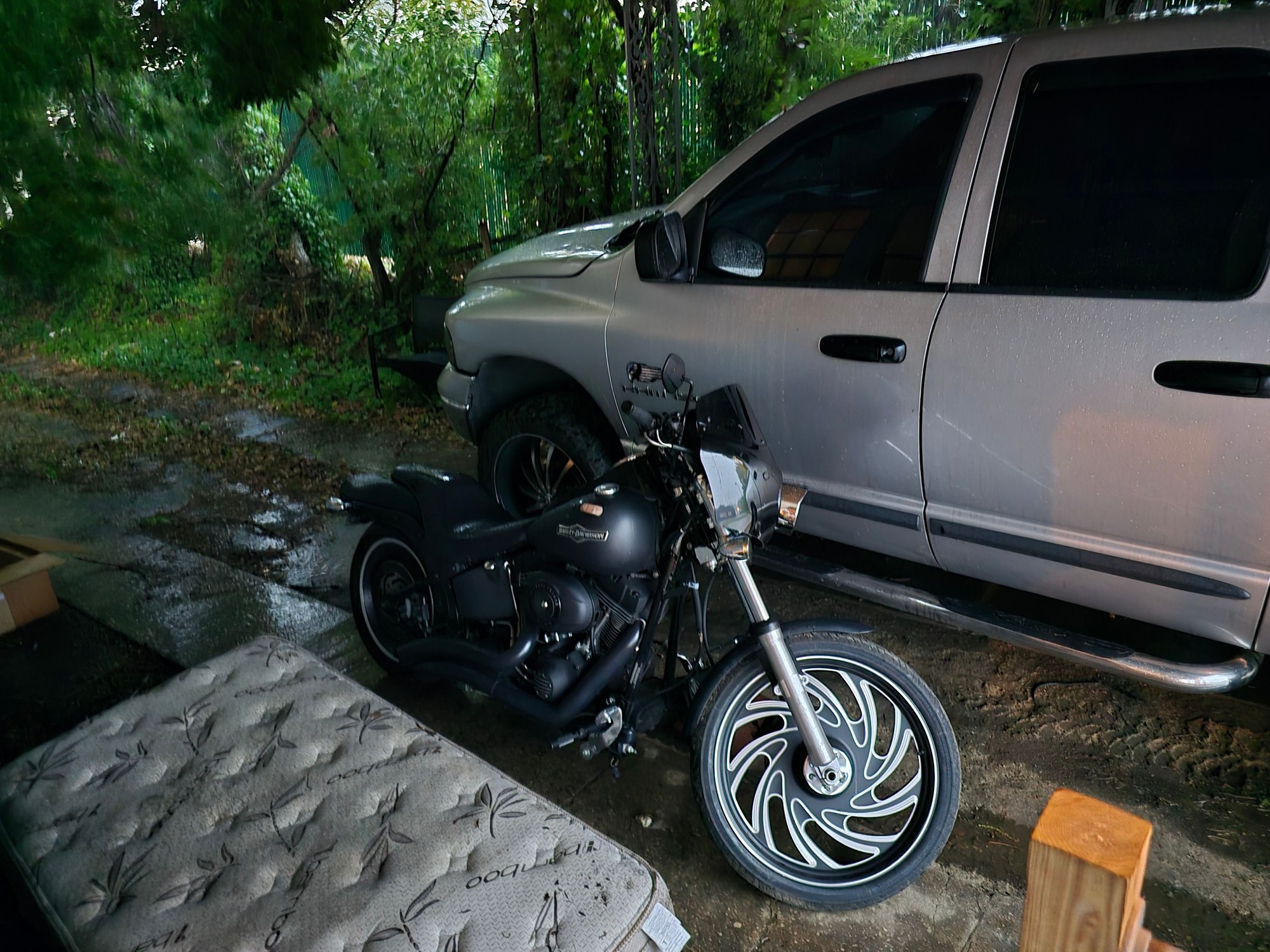 A tie down from bike to truck running board would have been a better idea...