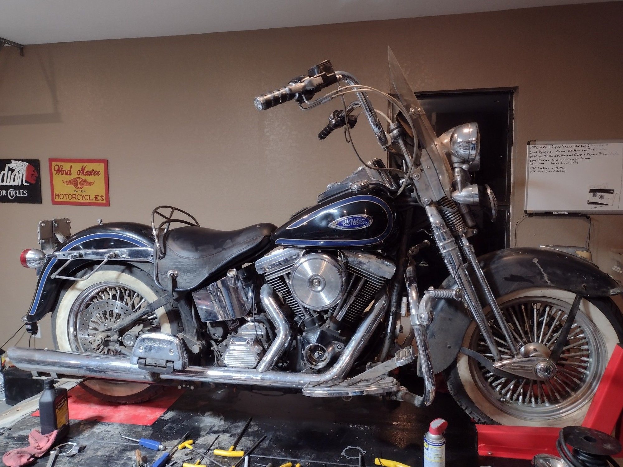 I just purchased a 1998 Heritage springer softail with the black and blue paint scheme. I'm trying to find some parts to put it back close to original. If anyone has any suggestions I'd love to hear them. I've looked at everything eBay has. I've found one set of original saddle bags but they are 2500$. Also looking for a painted front fender before trying to send this one off to paint. Thanks