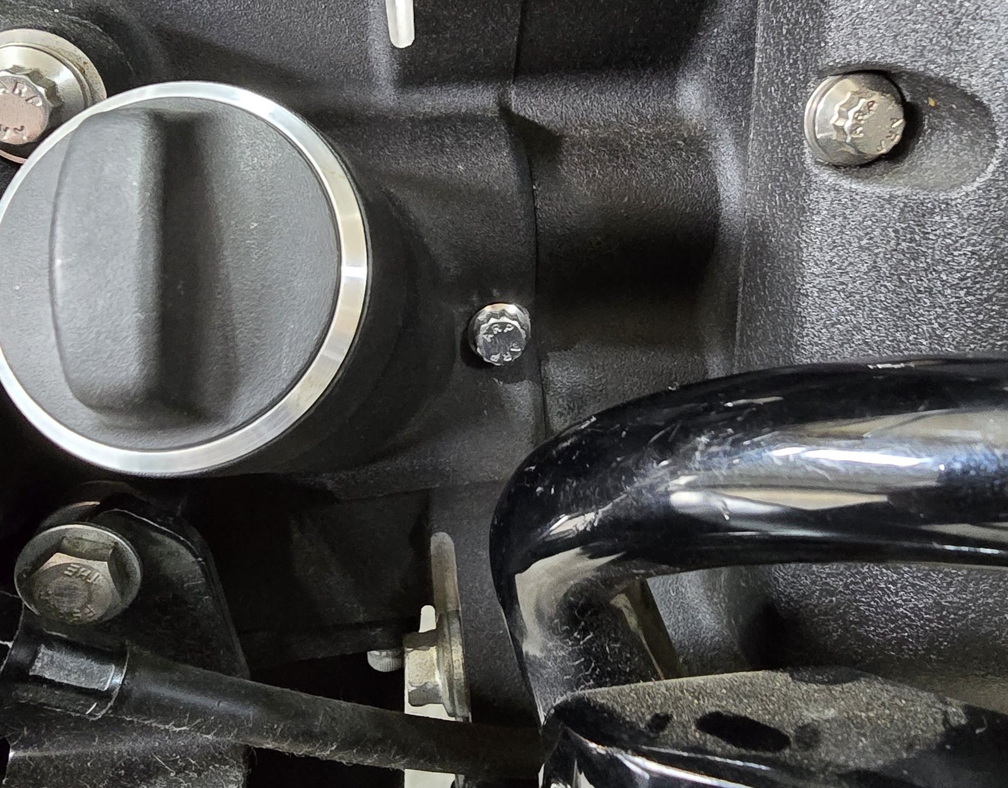 ) if you can and blow them out before installing your new bolt with blue or red Loctite depending on the circumstance, I have been working my bike over for a few years doing bolts as I find them and can access them and as of this winter it is 99.5% stock fastener free, including inside the engine case. You'll see some OEM bolts in these pics and they've been replaced, including the tiny nut on the ground post by the starter.