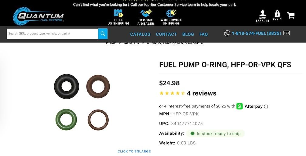 2. The suppliers for the parts install different o rings on the assemblies when shipped. i.e. Delphi sends the pump and attached hose with a black o ring, and whoever the check valve/fuel line assembly supplier is ships them with a green one.
