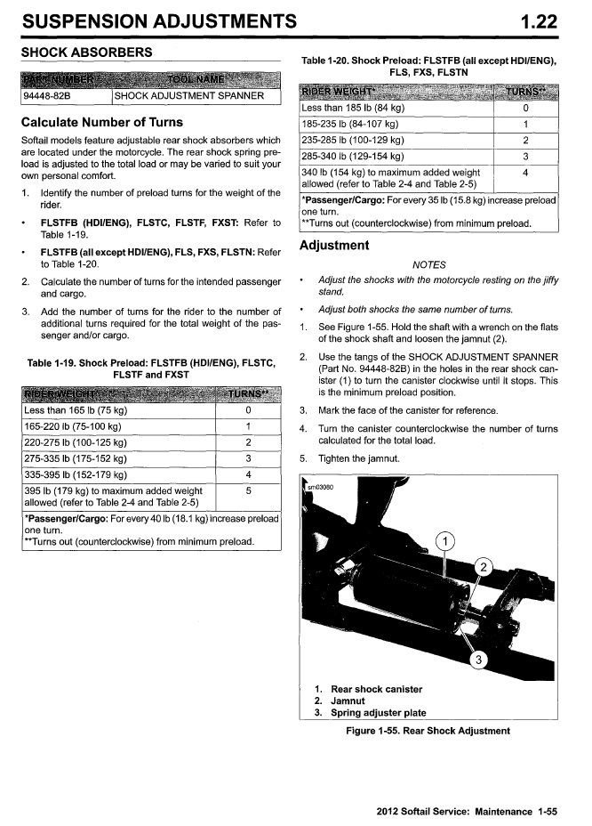 Here is the HD Factory Service Manual directions for adjusting the shocks.