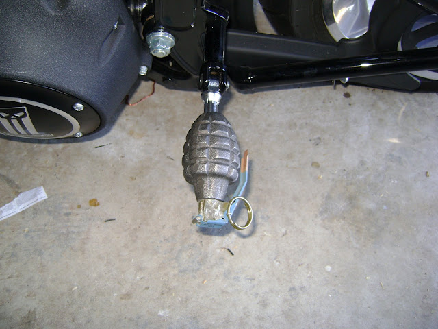 I like the grenade idea, but if I were you I would get rid of the Home Depot threaded rod and use a 5/16"X20 grade 5 or 8 bolt with a grip length (unthreaded section) that will fit through the grenade but still allow you to put a nut where you have it in the fuse assembly.