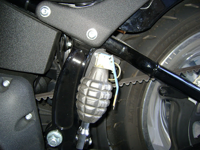 Screw on the adapter. replace the spoon, thread the pin back in and bend it so it doesnt fall out... slap em on your passenger pegs and deter piggybacking. Enjoy the smiles from cage drivers at redlights.