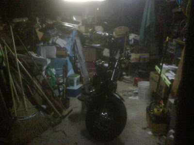 I have to rent a garage also shared by the home owner.... I pretty much have to squeeze myself around the bike to work on it. Mind you, it may not look it from the pic but my drag bars are 36" wide. I have to keep the front end to one side just to walk around the bike.