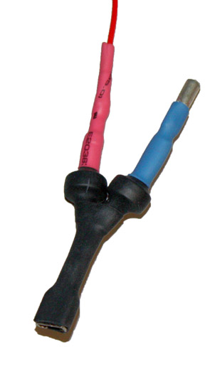 Cut the plug off and slide a piece of heat shrink (included) over the wire. Then strip and crimp into the connector on the diode pack. Slide the heat shrink over the crimped fitting and shrink it.