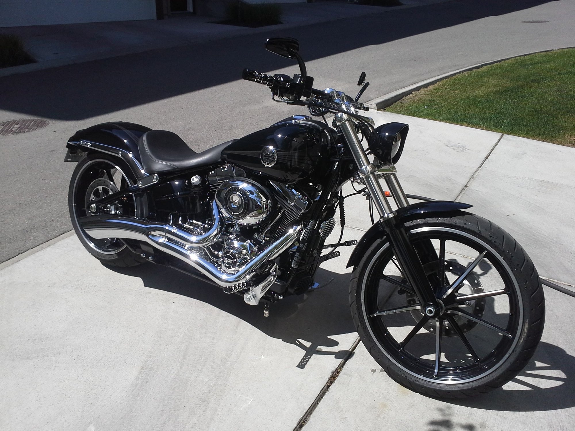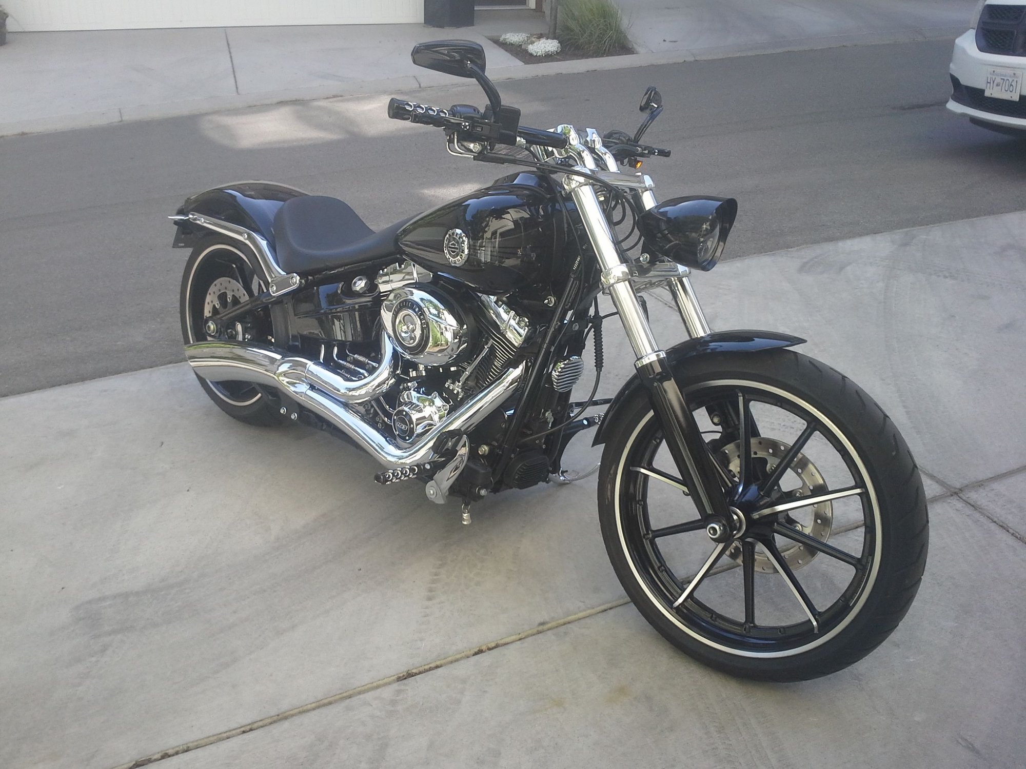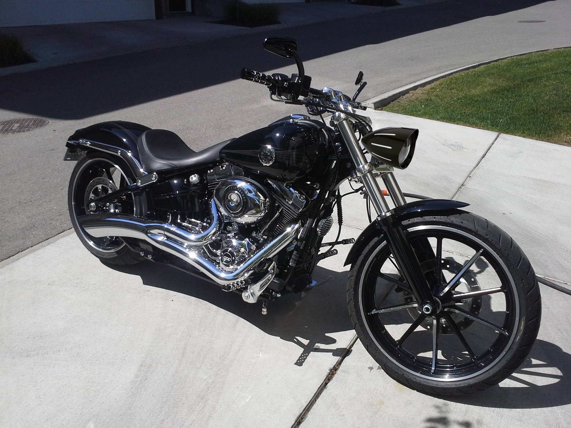 Looking for some opinions on a new headlight housing. I have one of the HD visor trim rings powdercoated black, which I don't mind but I'm not happy with how the finish turned out and have given up finding someone locally to redo it, I've also been looking at Headwinds housings, a local shop had one of the lower end US housings in stock so I mocked it up to see how it looks. I also did a photoshop of how the high end Headwinds would look, my only concern is that ones about an inch longer and the US version is already quite long. I definitely like the fit on these way better than the stock housing, much better design if you ask me.