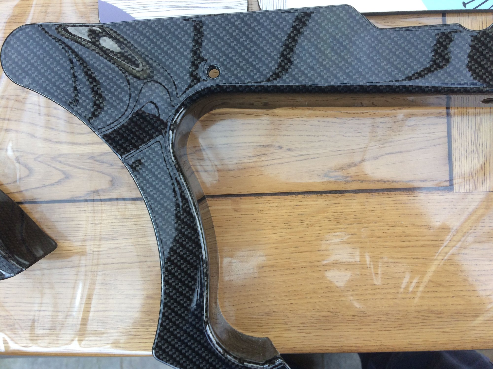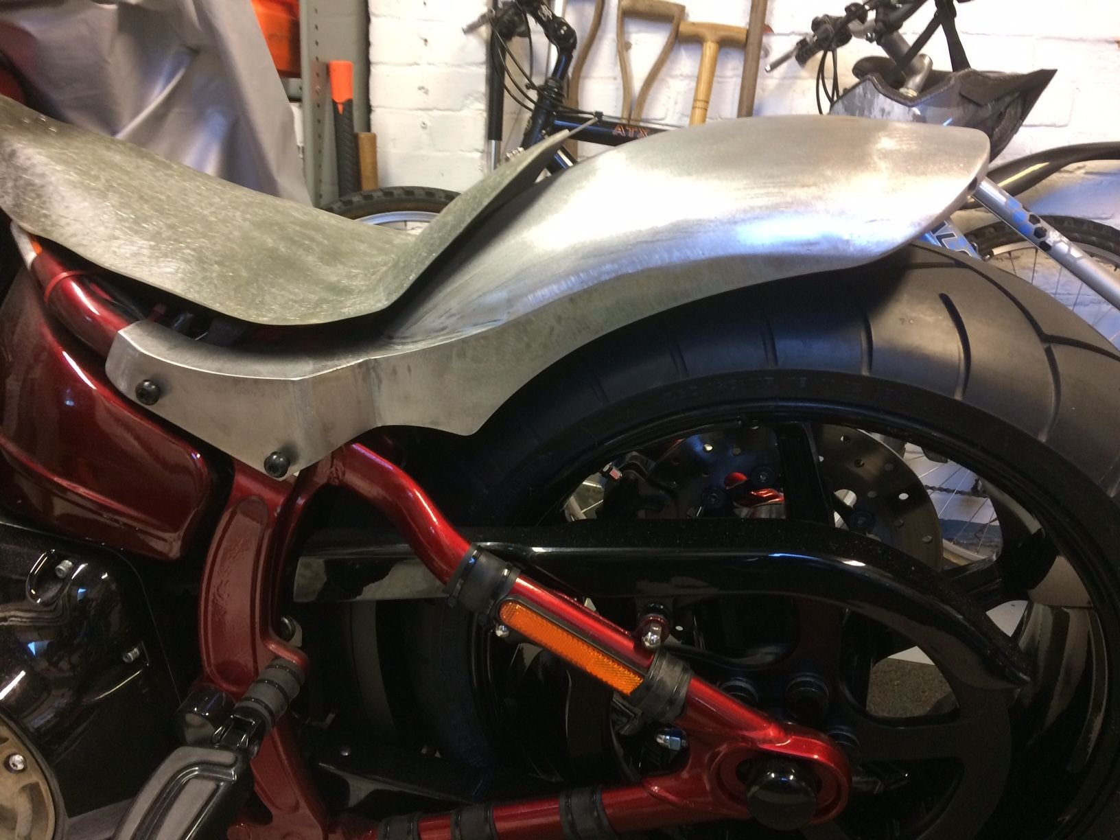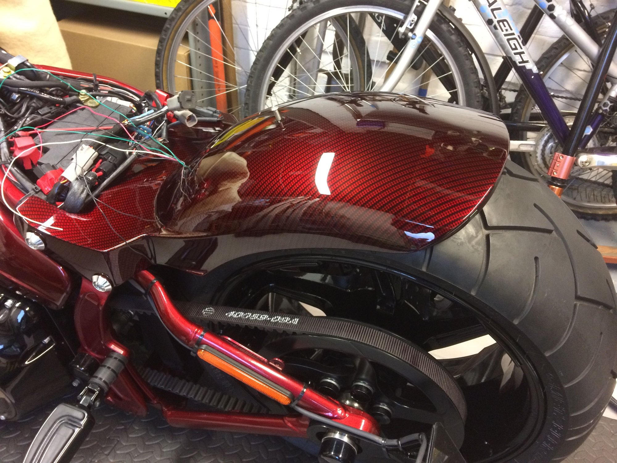 Thank you. The fender arrived bare steel. I was going to get the rear fender carbon wrapped but the cost was eye-wateringly expensive so I had it filled, sprayed anodised red then hydrographic 3D dipped with a carbon transfer then three coats of lacquer on top. I could theoretically have this process carried out 3-4 times if I want a colour change or style change for the same price as carbon wrap. I also had the two piece belt guard done in carbon black.