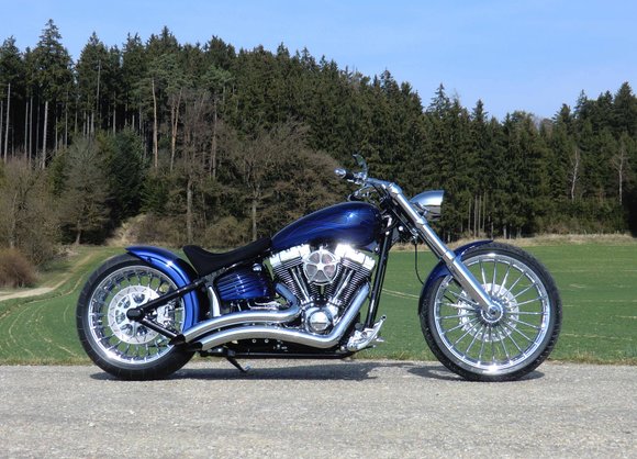 I installed a Breakout front wheel and tire on my '05 Deuce. Not without a bit of machine work; the earlier softails had 3/4" axles. Still looking for a fender.
