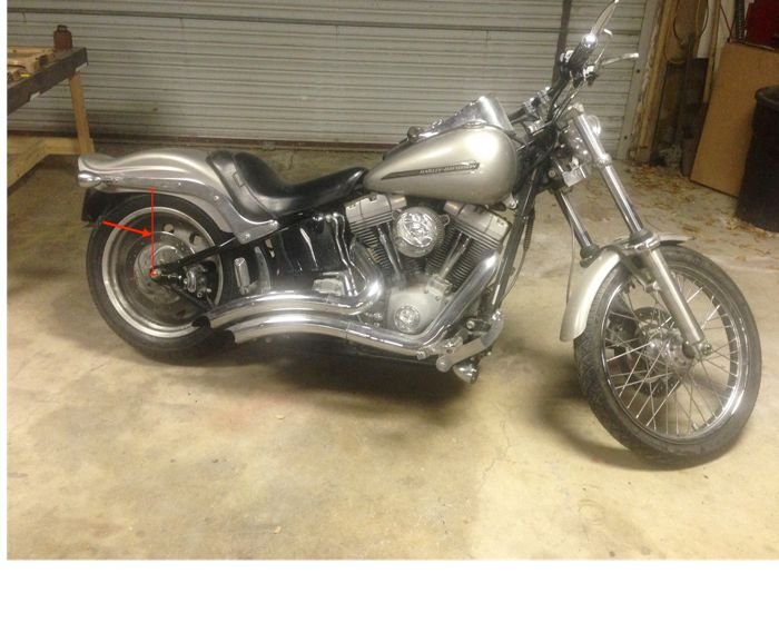 Thanks for the replies guys. Really, all I need is the stock measurement from the center of the back axle nut to the bottom of the fender strut, to see how far off I am. I showed in the picture what measurement I need. Thanks!
