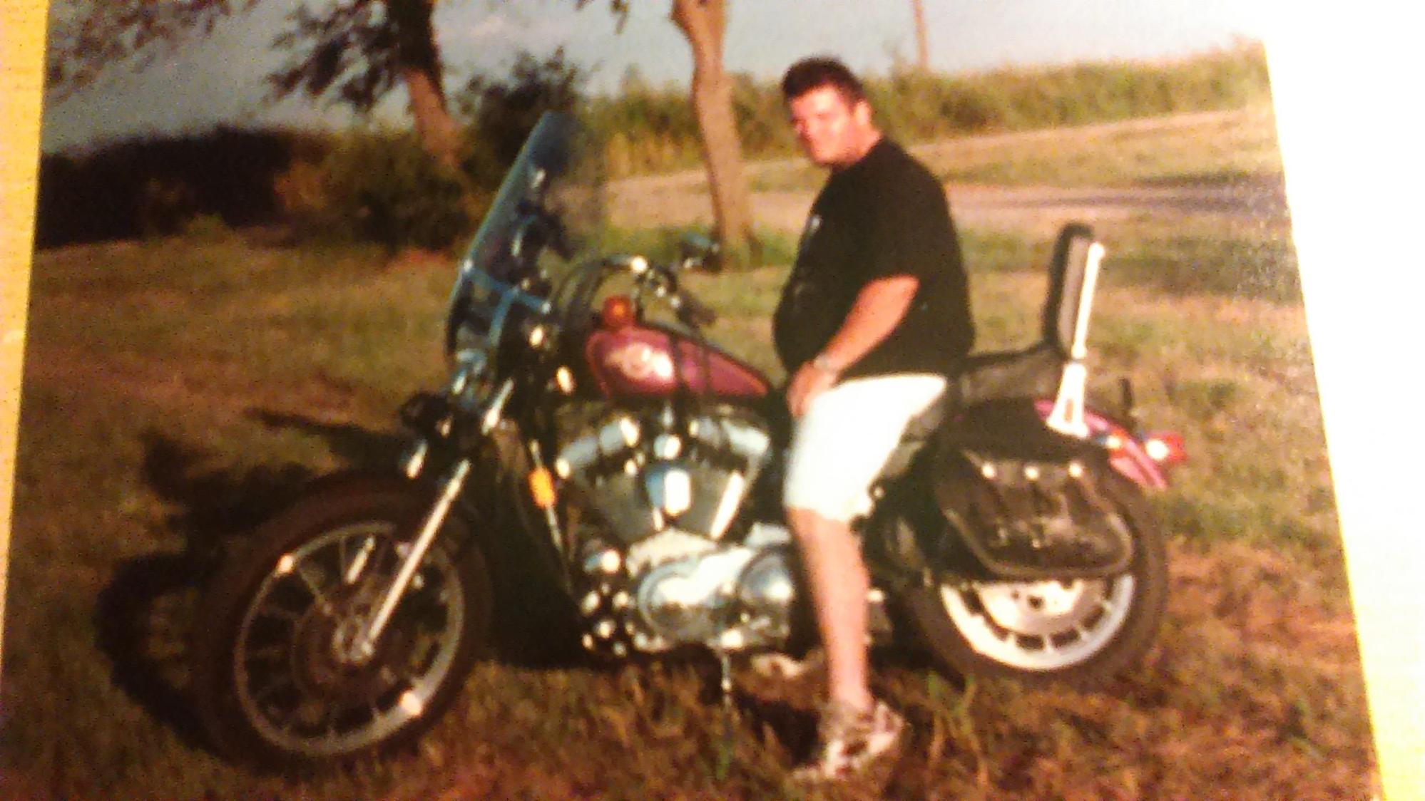 My brother who is in the photo got killed on this sportster in 1996 and until now the bike was kept in my fathers house until 2003 and in my garage since then. Well I have decided to have the bike put back together and I am wondering if anyone knows of a place that I can buy the tank decals for it like the one pictured. it is a 1996 1200 sportster and I have looked for the decal all over the net with no luck. Any help would be appreciated.