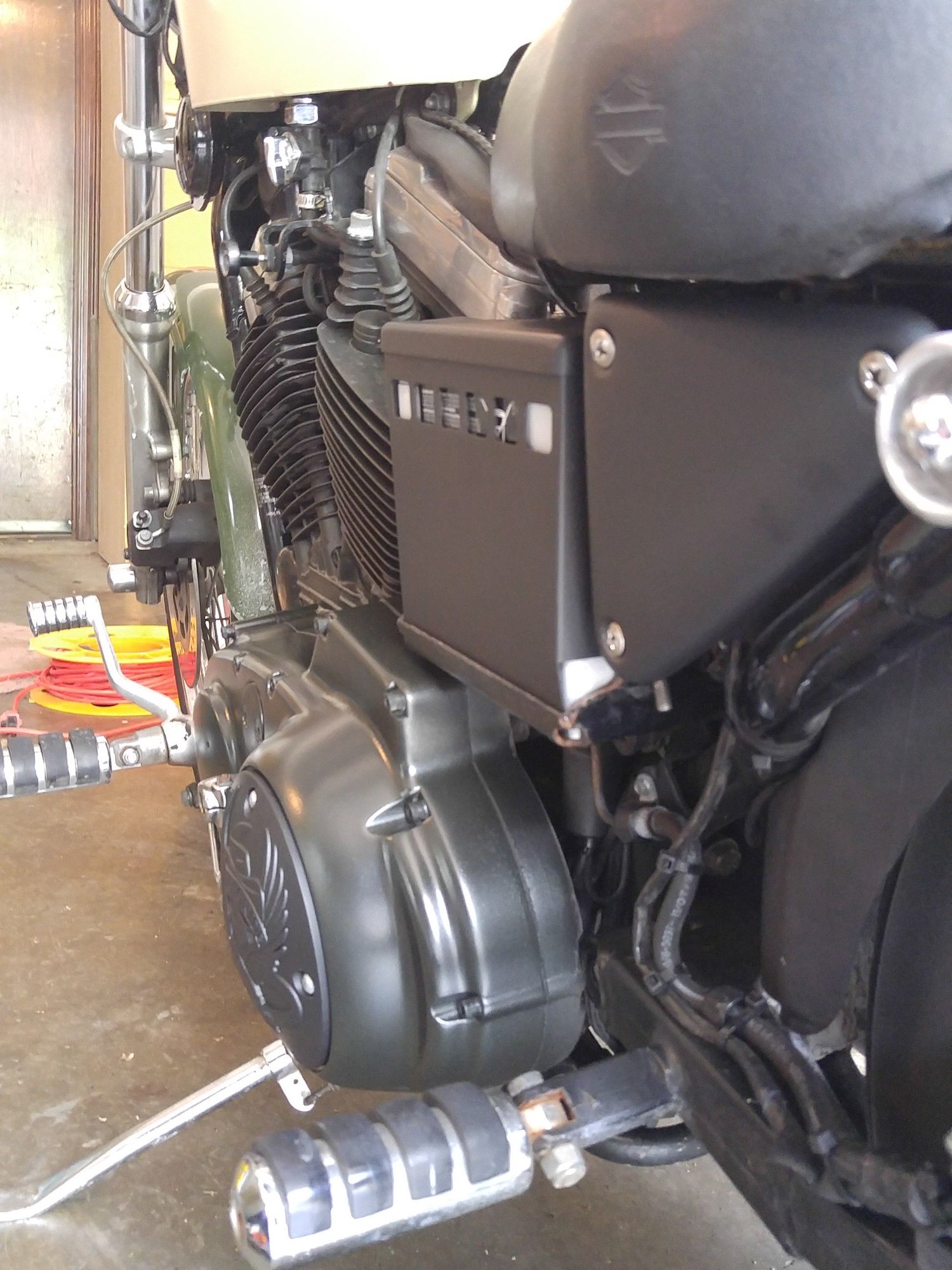 Through Process of elimination I'm hoping I diagnosed a faulty speed sensor correctly. Still hoping as it's to arrive tomorrow by mail but it's taken me a few solid hours to get the fecking bolt off the sensor to remove it. To avoid throwing wrenches in small fits of rage I spaced my speed sensor work out by powdercoating more stuff and installing the drop plates. Once started on the drop plates I realized some of the hardware wasn't going to work once the belt shield was put back on...quick trip to Ace Hardware #sponsoringharleybuildswithnutsandboltsforever and hopefully I grabbed the right hardware...time will tell.