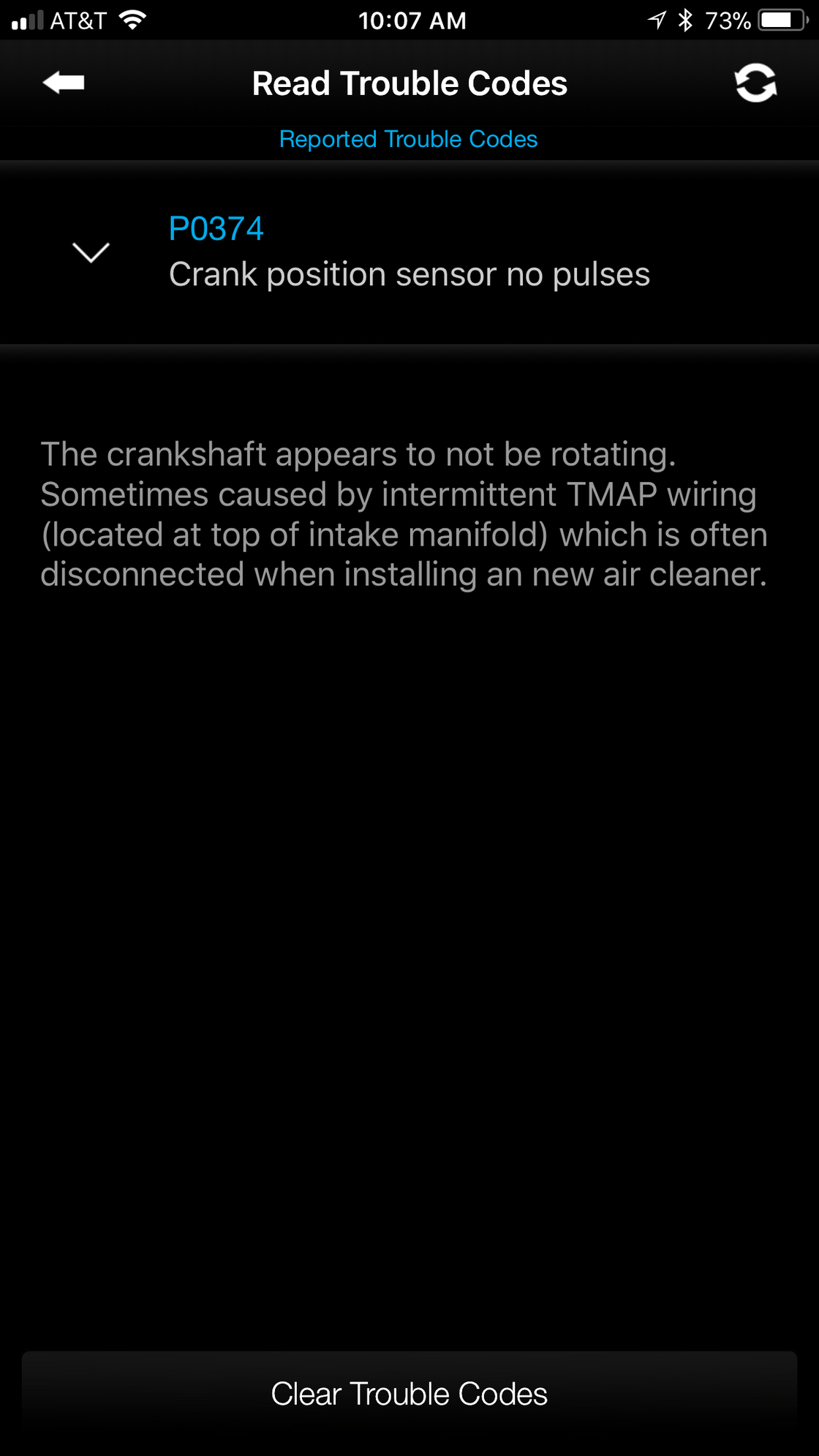 The Sportster electrical service manual says the Engine must be cranked for more than five seconds without CKP signal to set P0374 code. Engine will not start if signal is not detected or cannot be synchronized.