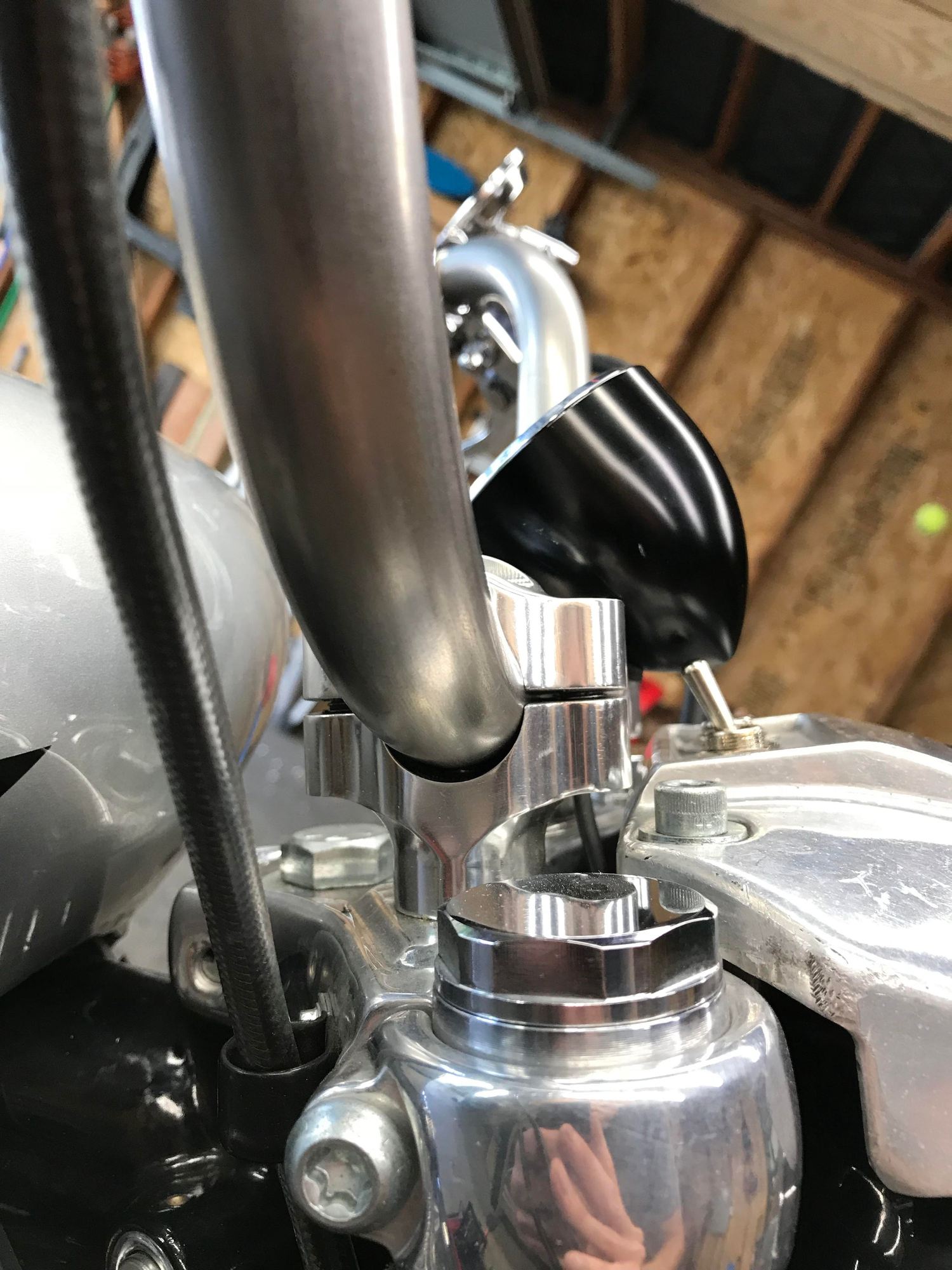 find someone to bend bars couple milimeters......angle'd in risers.....why did the Motogadget installation change you setup (was nice and clean before)......they looked good in other pics