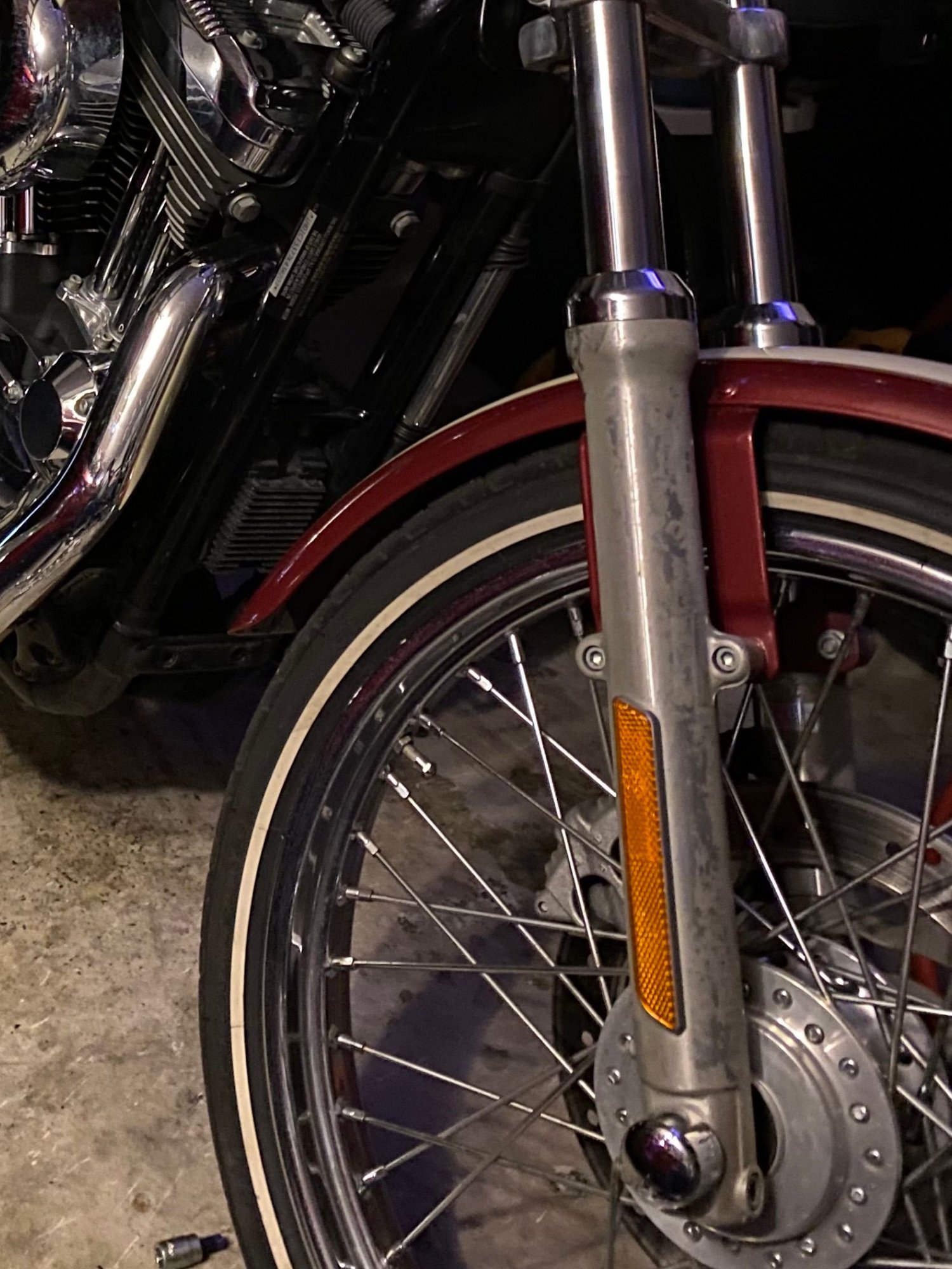 This is what you can do to an unwanted ww. While it was off the bike I sprayed it with some type of rubber black paint and it looked perfect and held up till I needed to replace it. Maybe when I get to polish the rear disc I’ll try to find that type of paint. Front tire is getting replaced, it’s past it’s due date of 6 years. I think it had 14 for the date stamp. Rear tire is good so I’ll wear it out.