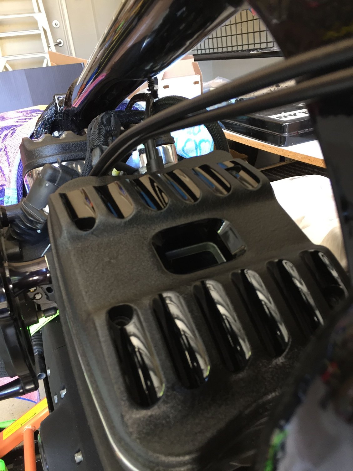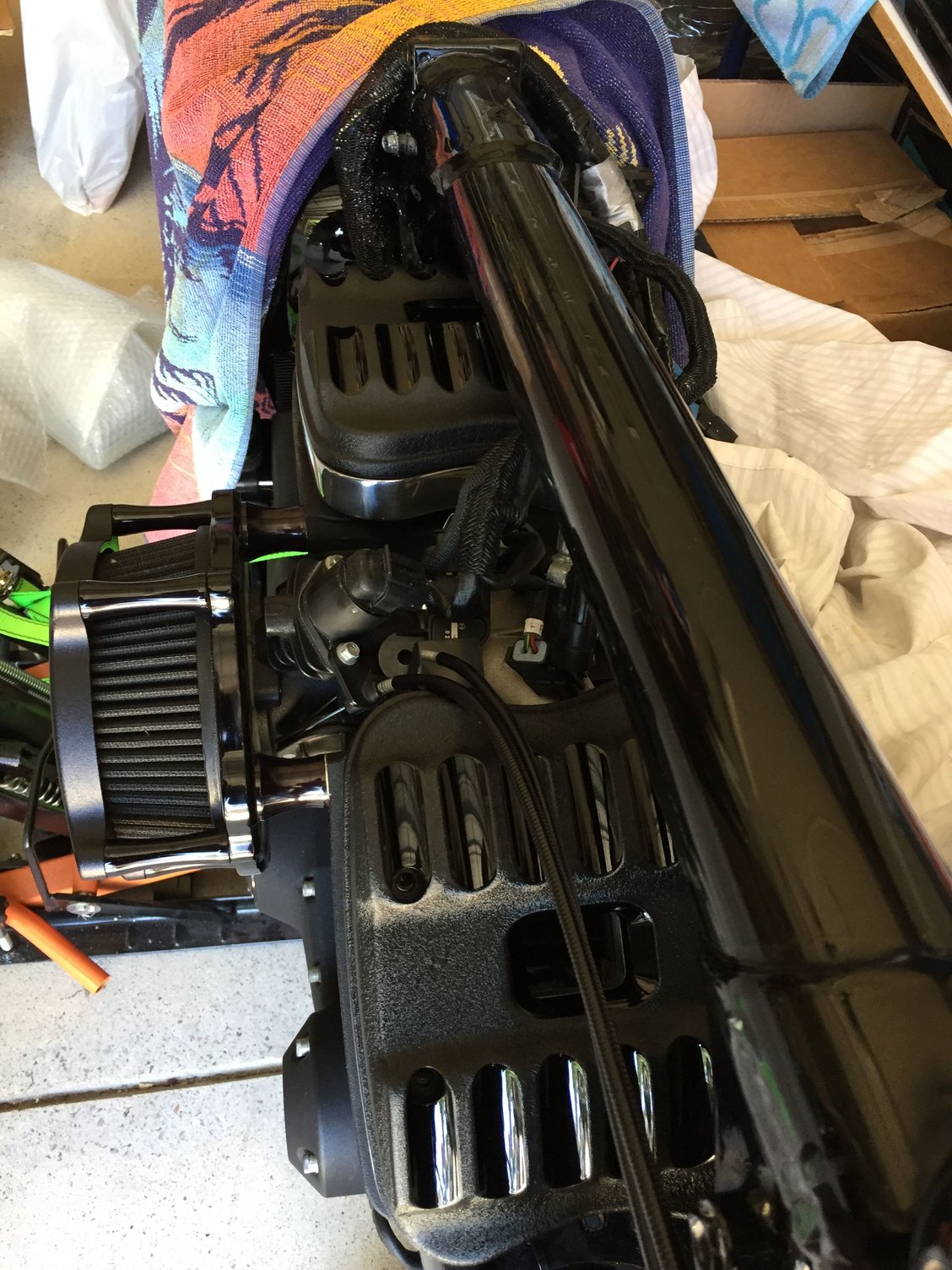Powder is over rated and I agree 100%...you could have real nice looking covers for the price of a can of high heatpaint. Maybe 5-6 bucks.If you take your time they can look as good or better than powder for alot less $.It's easy to do,it lasts, and you can do 'em right in your garage.I did mine two years ago and they still look great.I don't have a better pic but you can kinda see 'em