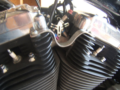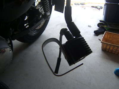 I wanted a solid mounting point for the coil but there were not a ton of options available. I thought about the stock horn bracket found on older sportsters and big-twins. This is what I ended up with using 1/8" thick 3/4" wide flat stock...