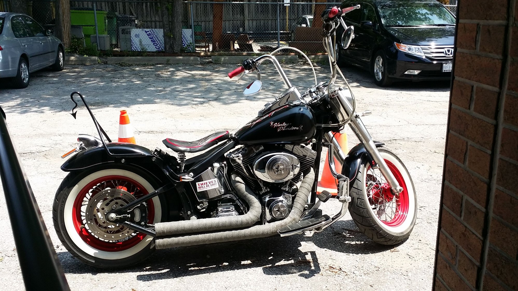 so who can show me a set up for low drags for a fatboy , I wanna go low since apes everyone has now so looking for that café racer look but because the tank and speedo I have to have a rise on them...my bike now