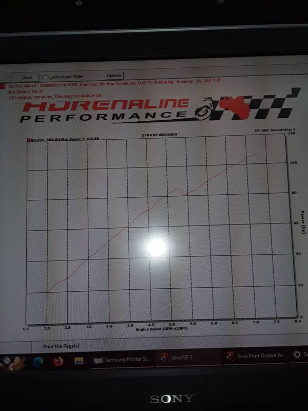 Couldn't quite get to 100 hp and the stock clutch is worn & losing grab atm. Its does run like a champ though ...right now. ;-)