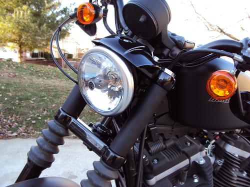 Lowbrow Customs makes these fork shrouds , pretty cheap and you can get blck, brushed or chrome.