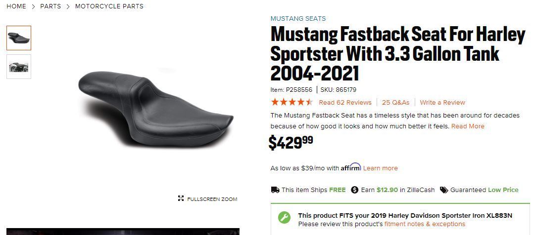 Mustang Fastback 2-Up seat for sale, fits 2004-2021 3.3 Gallon Tank Sportsters, mustang catalog #76145. Used for about 1,000 miles before swapping for a range of solo seats. Really comfortable and flows great with the lines of the bike. Minimal pattern stitching for those that like a clean look as well. Asking for $250 OBO.
