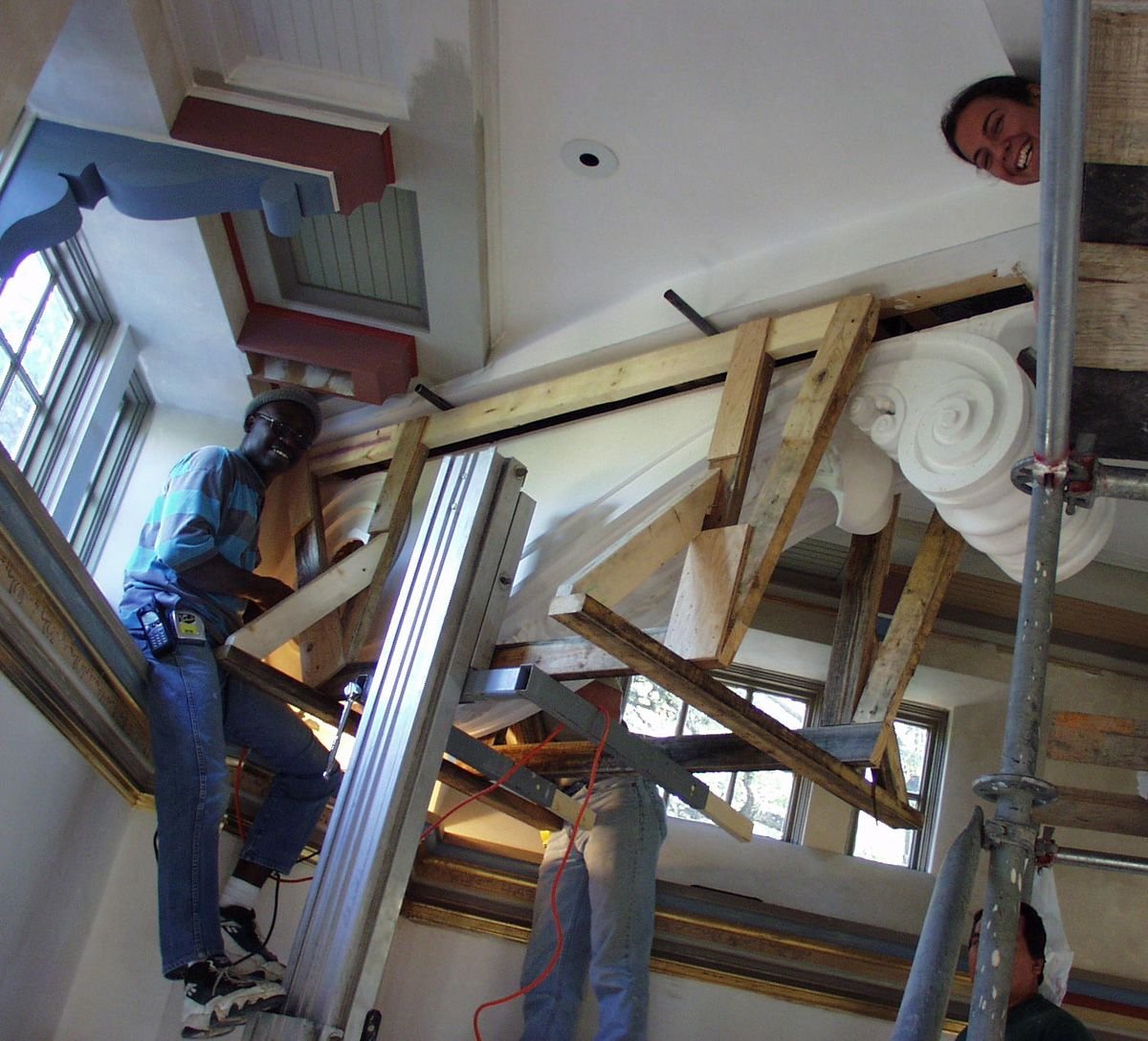the motley crew seen below, provided by the contractor. Again the pieces were produced in my studio, all handcarved plaster.