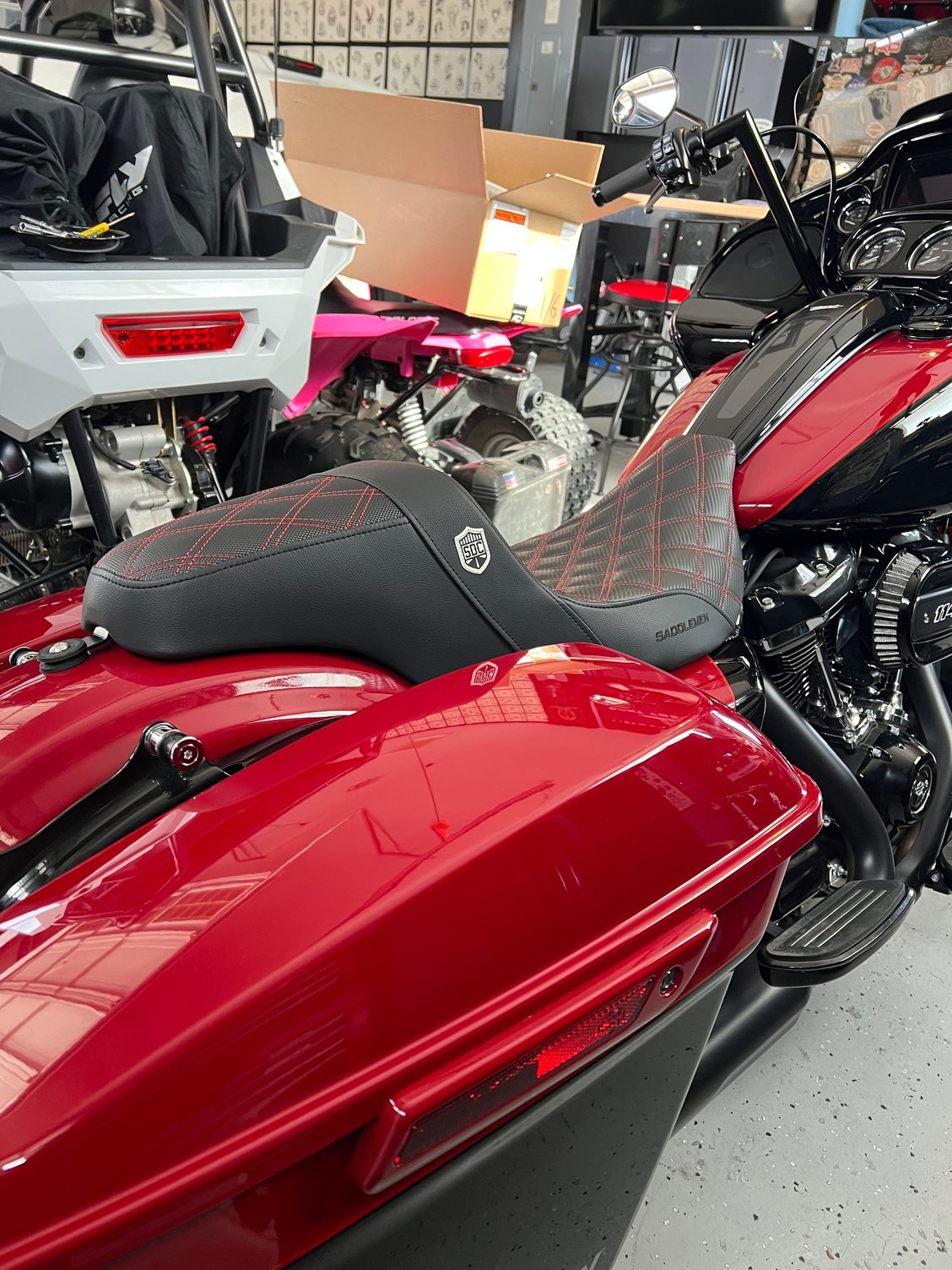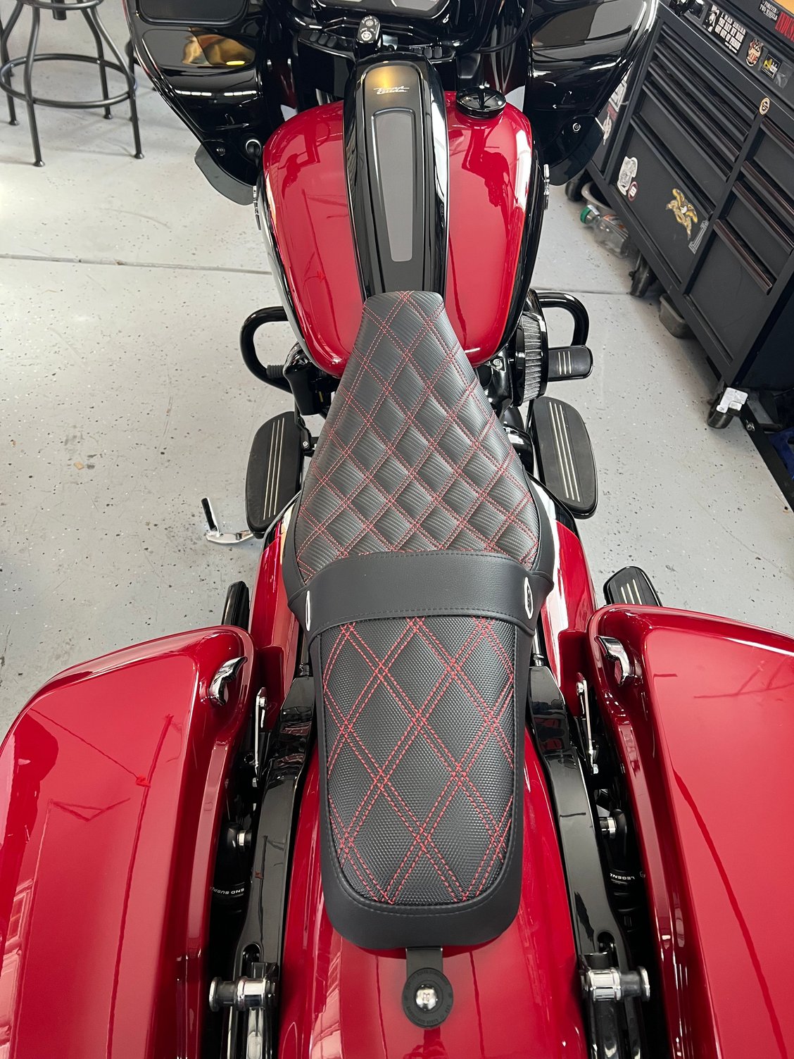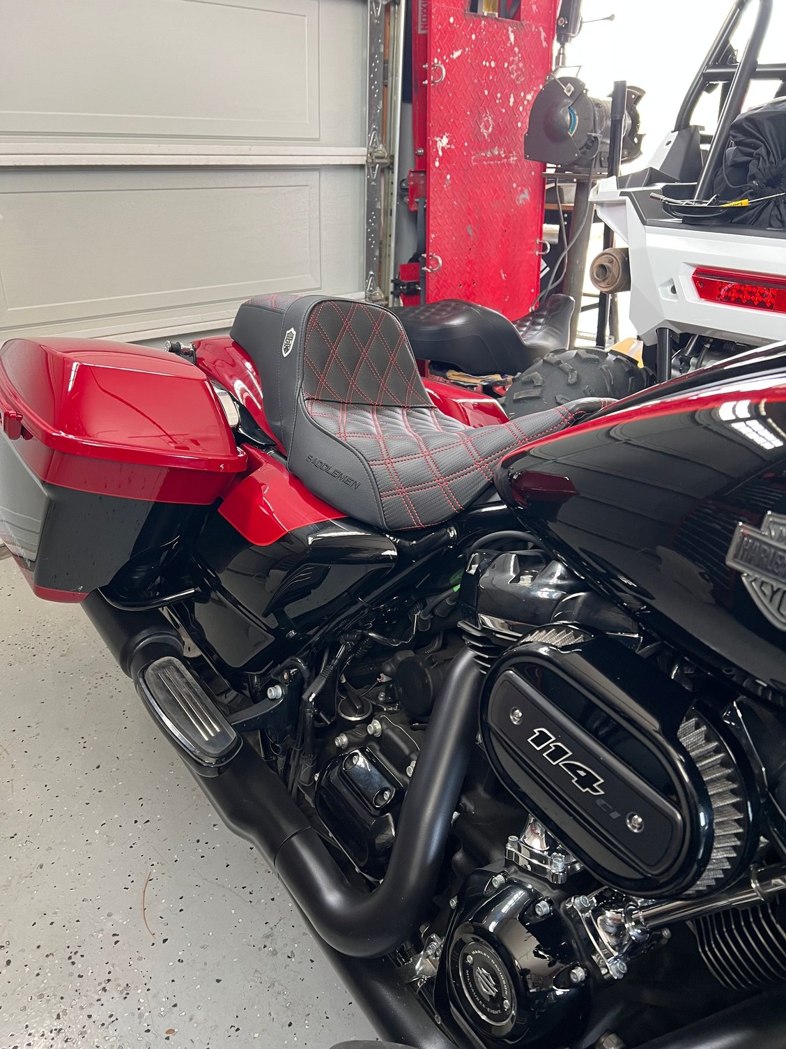 Put a SDC Saddlemen on it yesterday. Ordered Bung King risers and Thrashing bars today. Hopefully have it all dialed in by next weekend. After the furniture is figured out then it’s pipe/filter and tuner.