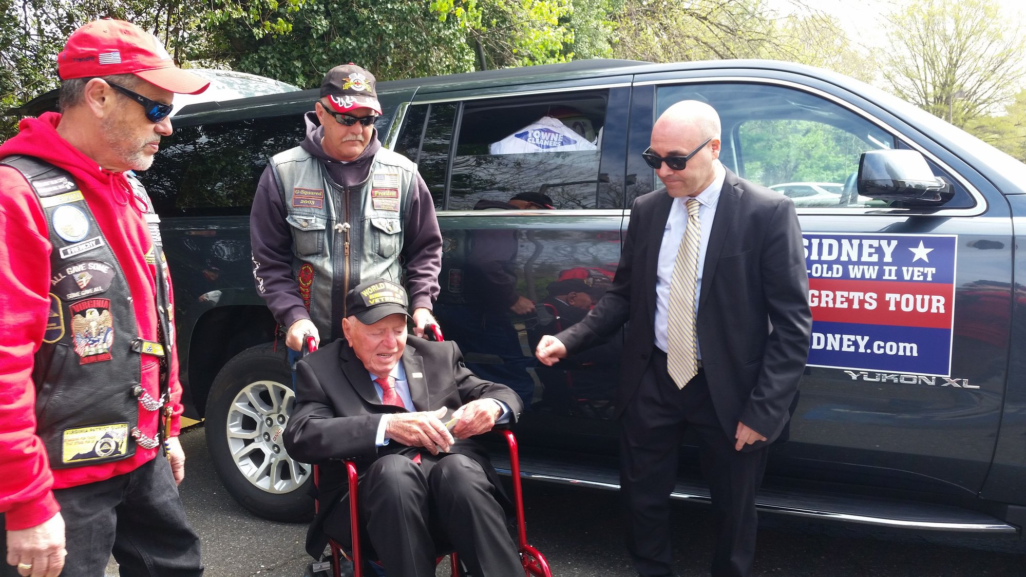 Today I got to ride for a living veteran, 100 year old Sidney Walton, a WWII veteran, is on a mission to visit all 50 State Governors and the US President. Today was his day to meet President Donald Trump and the Virginia Patriot Guard was invited to ride and escort him. He wanted to see bikes and flags, we did our best to not let him down.