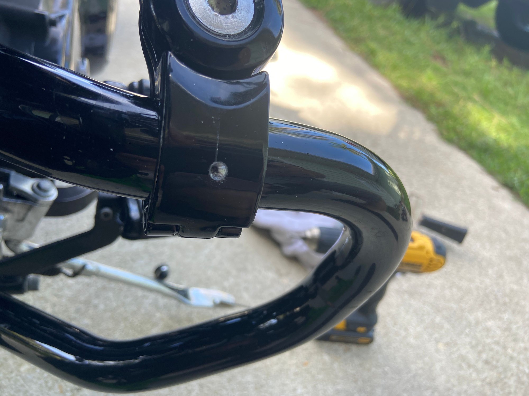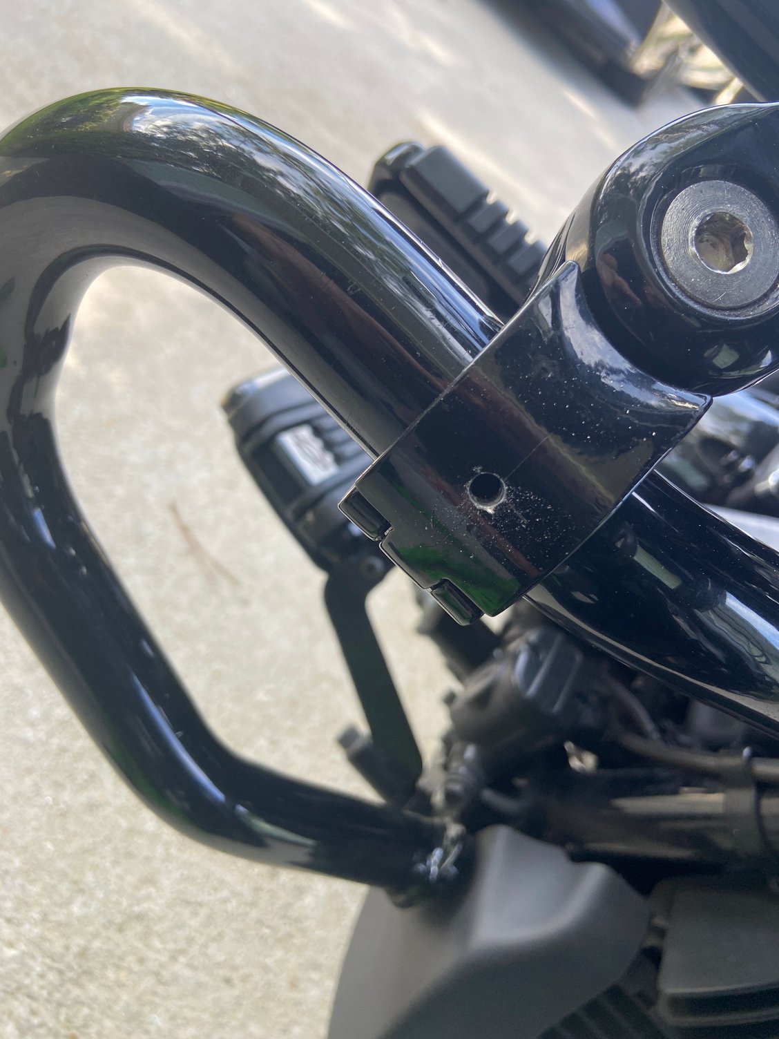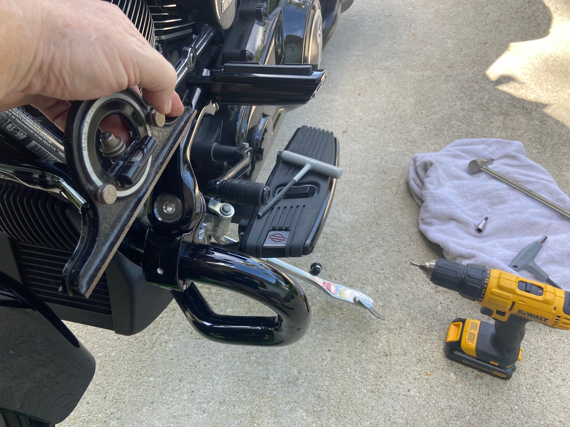 I was getting ready to drop some coin on a Lindby mustache bar for my neuropathy ridden legs and feet but just got word that layoffs may be on the horizon so I dug out the Chinese highway pegs I disliked but in a twist of genius put’em where I wanted them! LOL