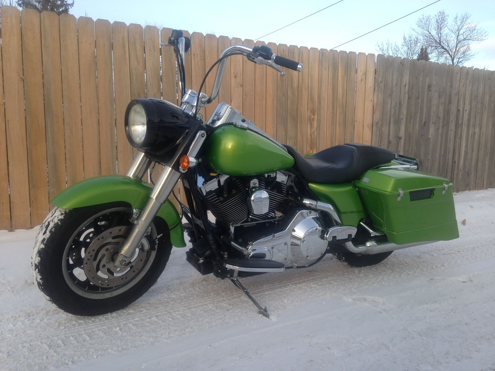 popular fender swaps are the HD streetstalker or Fatboy fender on a Roadking- these need billet adapter blocks- the FB may interfere with the crash bar if you want to use one.