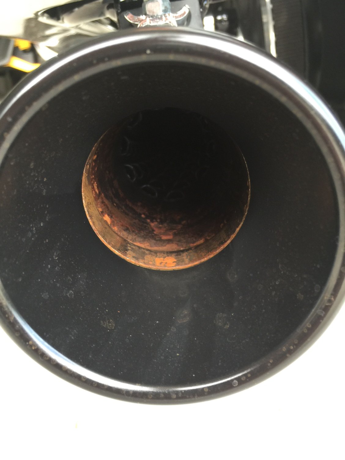 For all the Rinehart users I have a question. I purchased a set of the 500-0102 slip on pipes form a local dealer on 8-3-15. I installed them with approximately 175 miles on the bike, as of today the bike has 595, so the pipes have roughly 420 miles on them. Today when took a ride to the hill country and got into a small 10-15 rain shower. When I got home this afternoon and was looking at the bike, I noticed quite a bit of rust starting on the inside edge area of each pipe. Is this normal? Not normal?