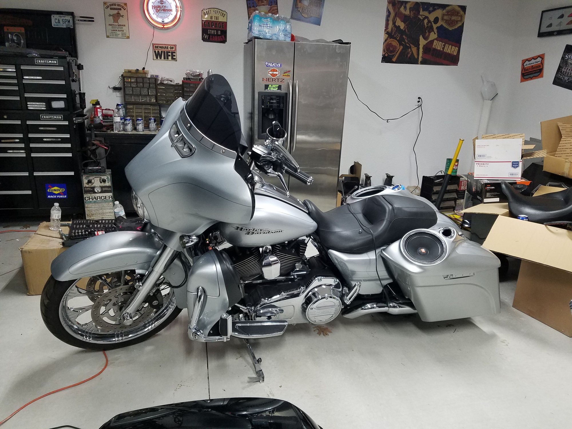 A sweet looking ride like that deserves a better than Stock horn cover.. they're ugly and Harley Davidson should be ashamed of themselves for ever putting that into production.