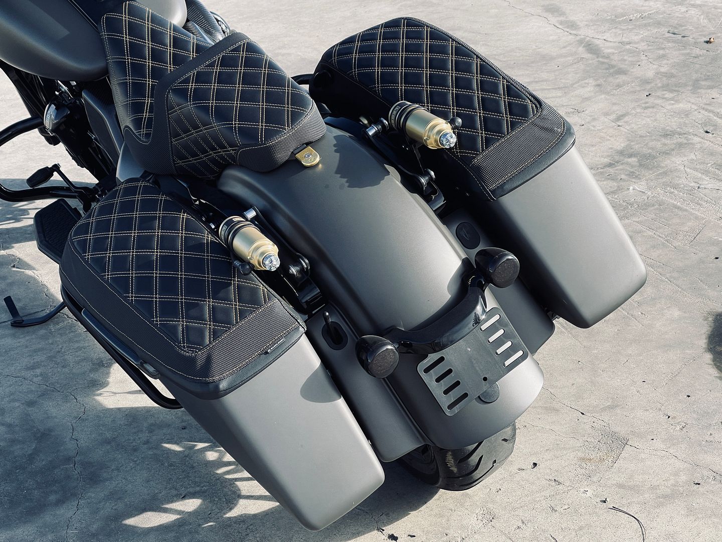 - One-off custom stitched Saddlemen Seat, Lid covers, & Sissy pad