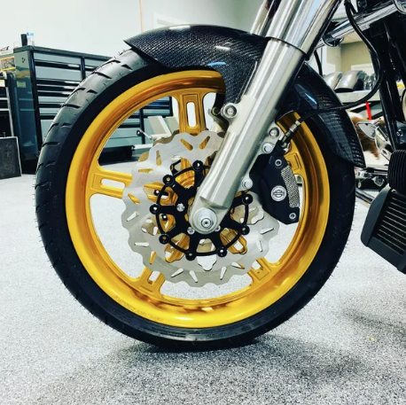 I added JRI 13” shocks, a hand made front fender, 12” FXR division motorwitch bars with solid riser bushings (Basically tbar feel without messing with gauges) low profile dash with flush cap, 9” klockwerks windshield and a drag specialties predator 3 seat.