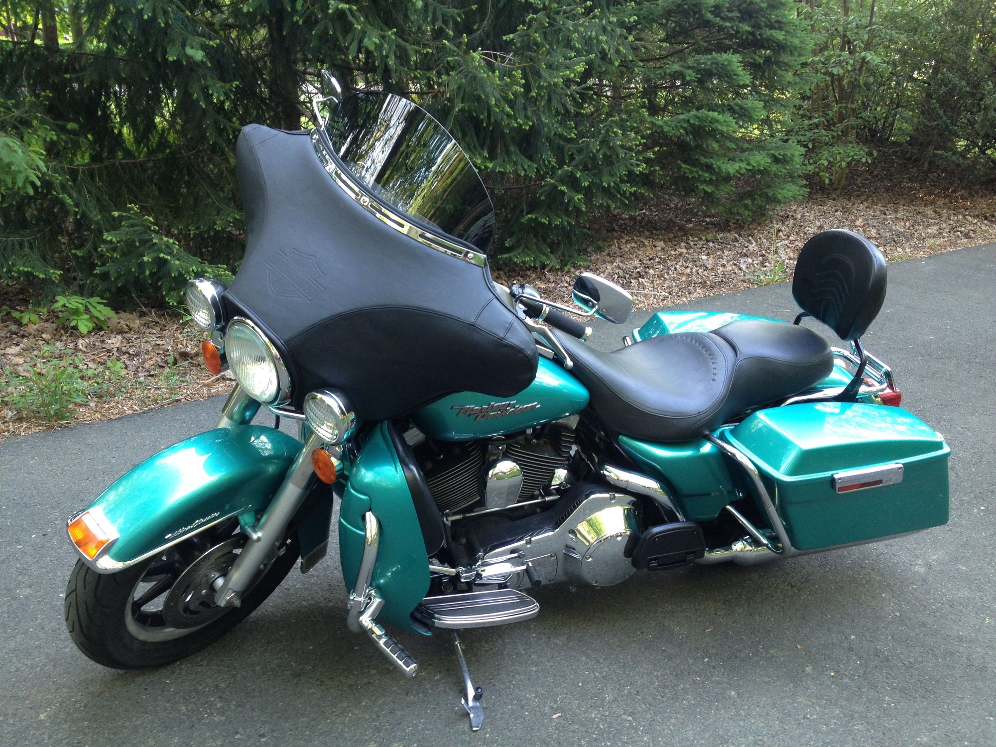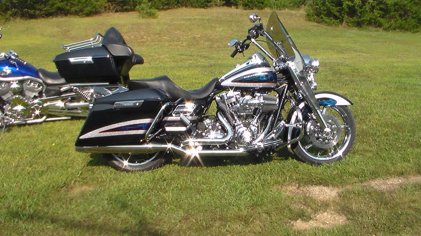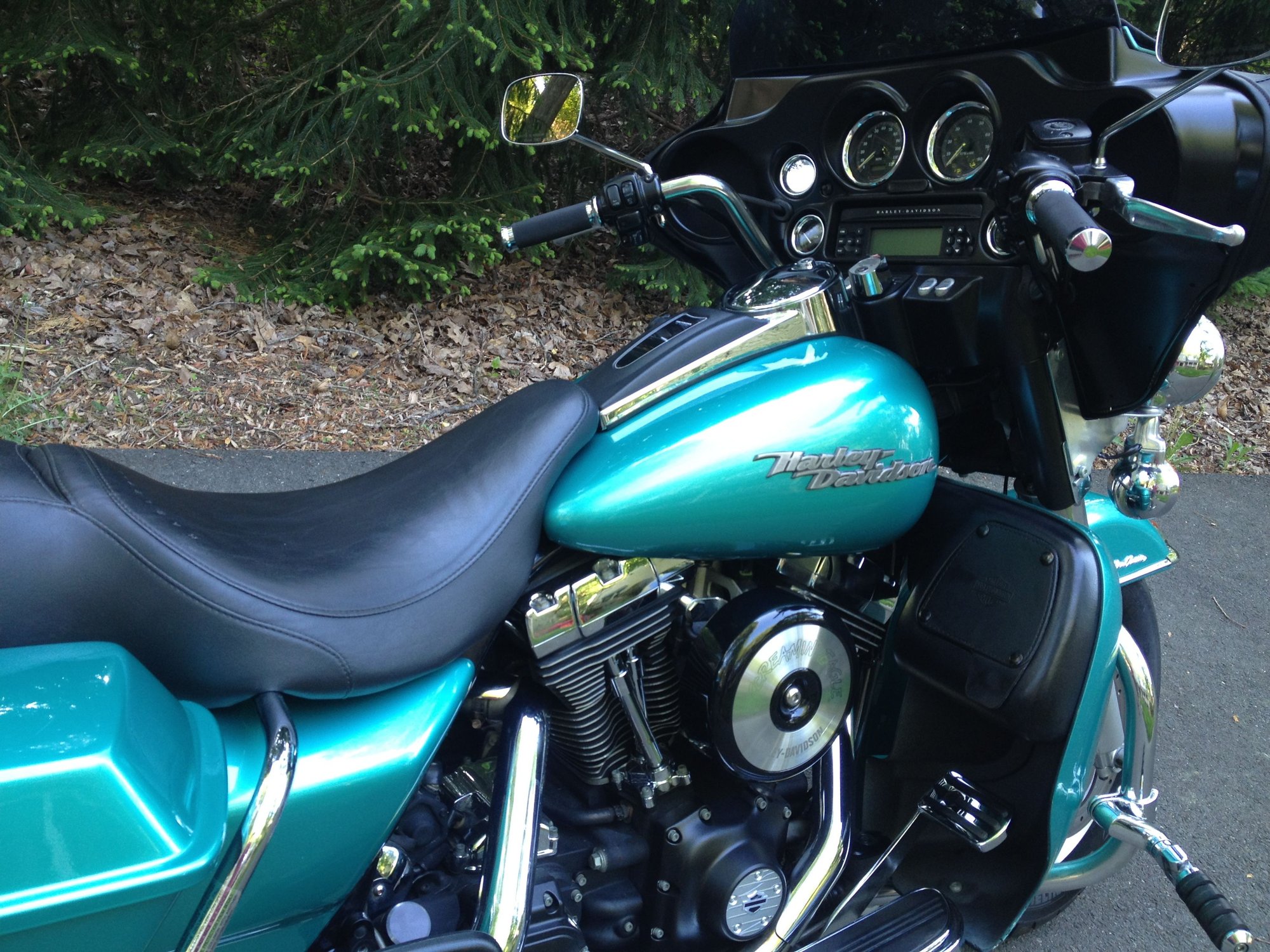 S.E 4" big bore 110 cylinders. S.E. 10.5 pistons. S.E. heads, S.E. 58mmTBI, S.E. billet cam plate,5.3 gram Injectors, Forged rocker supports, TP Roller Rockers, GMR 600 Cams, Woods Lifters, Axtell oil bypass valve, Red shift can tensioners, S.E. variable pressure clutch, COWBOY paint set, passenger foot peg, Extended reach footboards, Danny Gray seat, Mustache engine guard, Daymaker headlight, led auxiliary lamps, led tail lamp, aggressor wheels, M888 tires, Rider footboards, Highway pegs, tour pak. back rest, Speedometer/ Tachometer, Flush mount fuel cap & Gauge kit, 14" apes, Kuryakyn Mirrors, Boss blade levers, Led inserts rear turn signals, Bassani Head pipes, Rush mufflers, Arlen Ness grips, Progressive 944 rear shocks, Progressive mono tube cartridge, Chrome front fork kit, Axel nut covers, Wolo Bad boy air horn, S.E. Elite Heavy Beather, S&S pushrods, Live to ride side covers, finned head bolt bridge, Klock Werks windsheld, Turn signal button extnsions. I know I'm forgetting something!