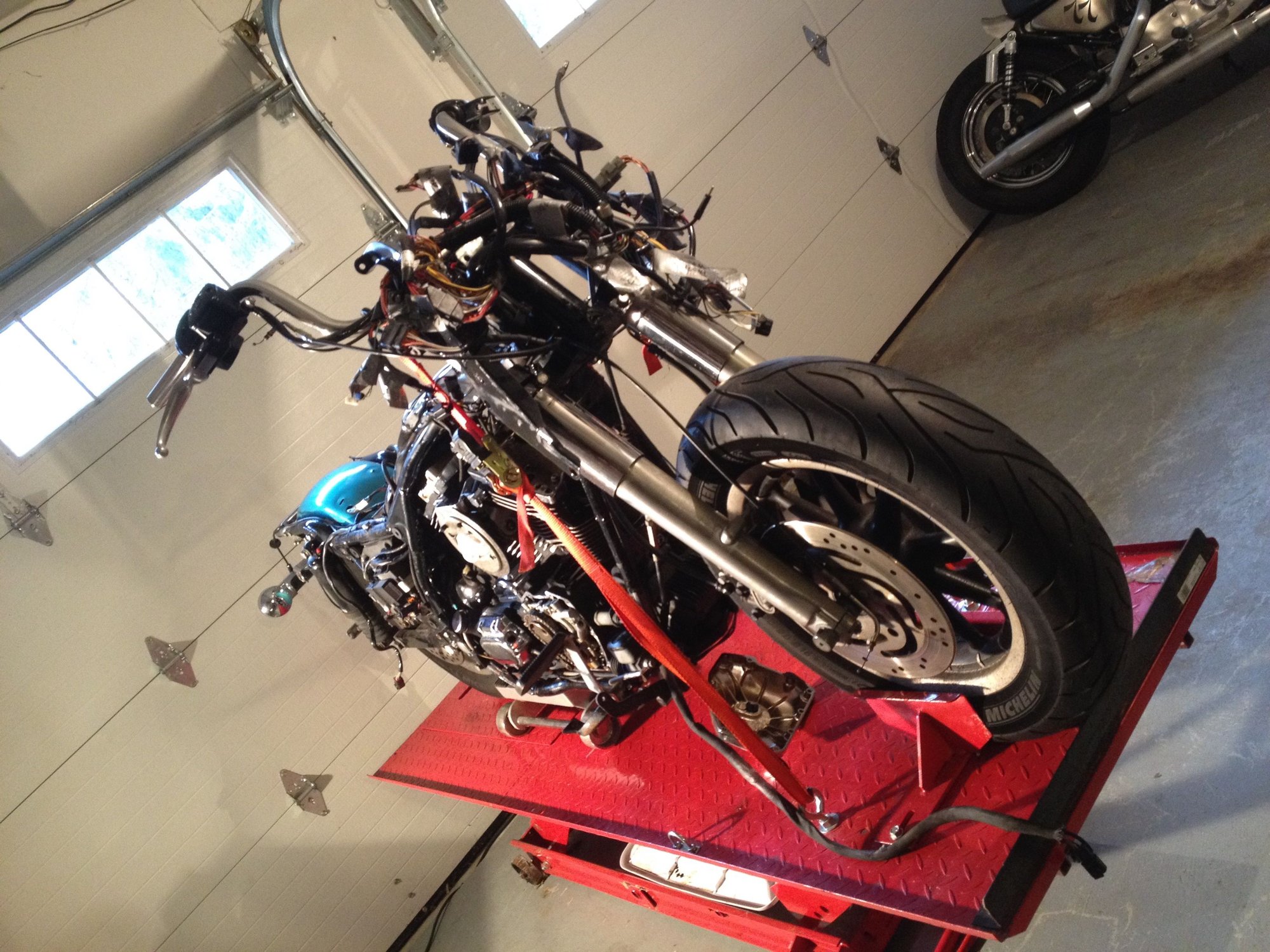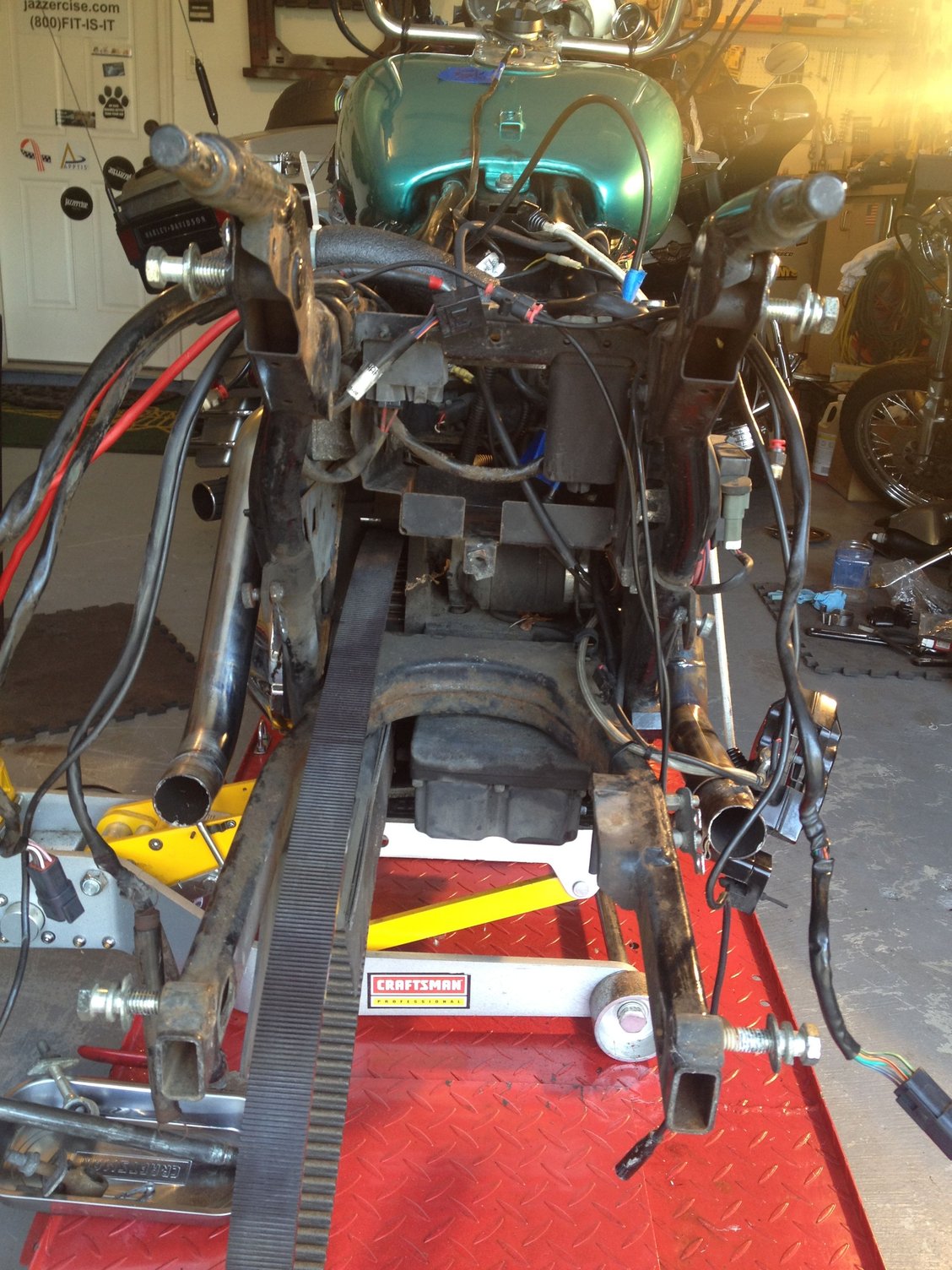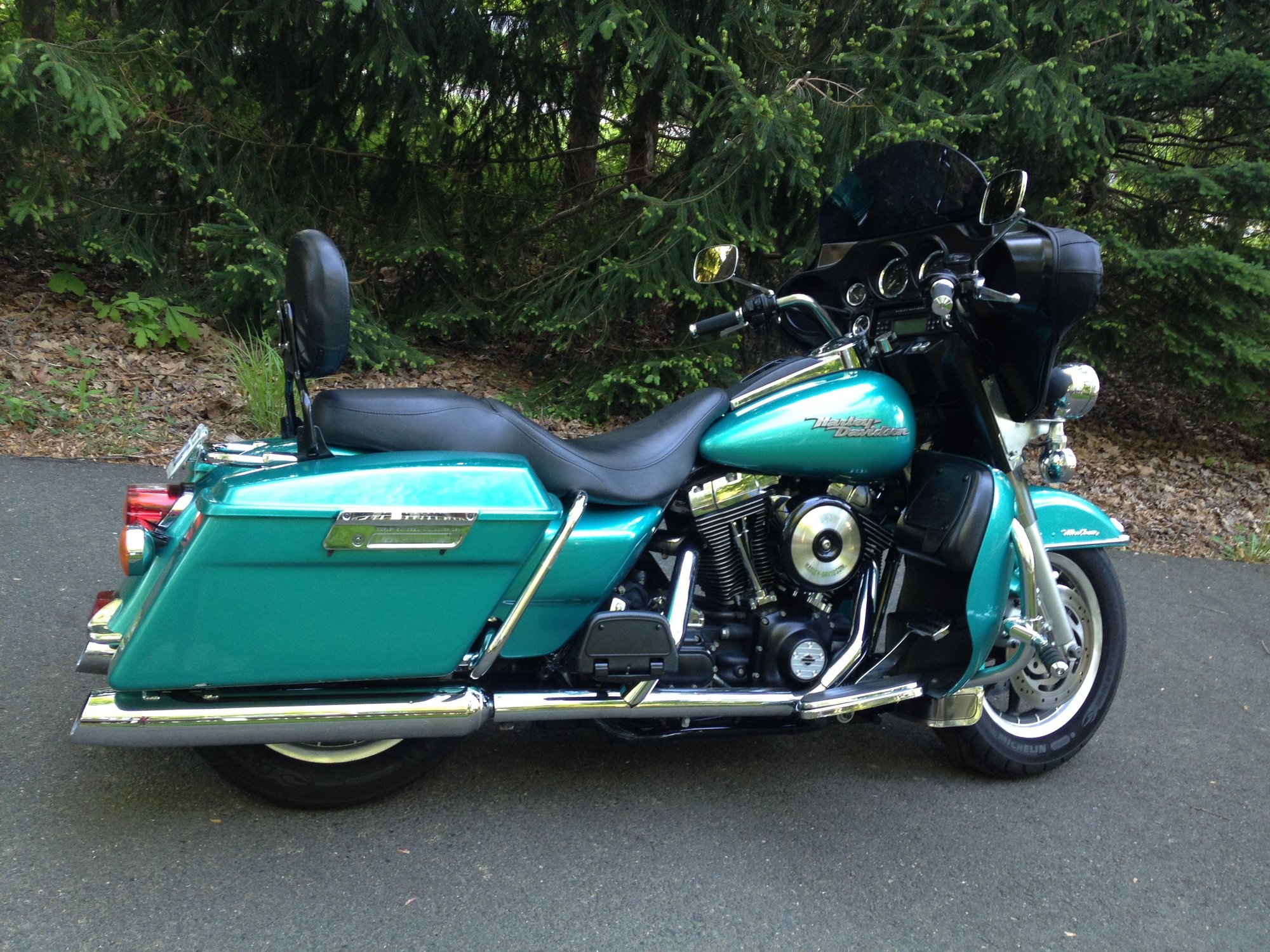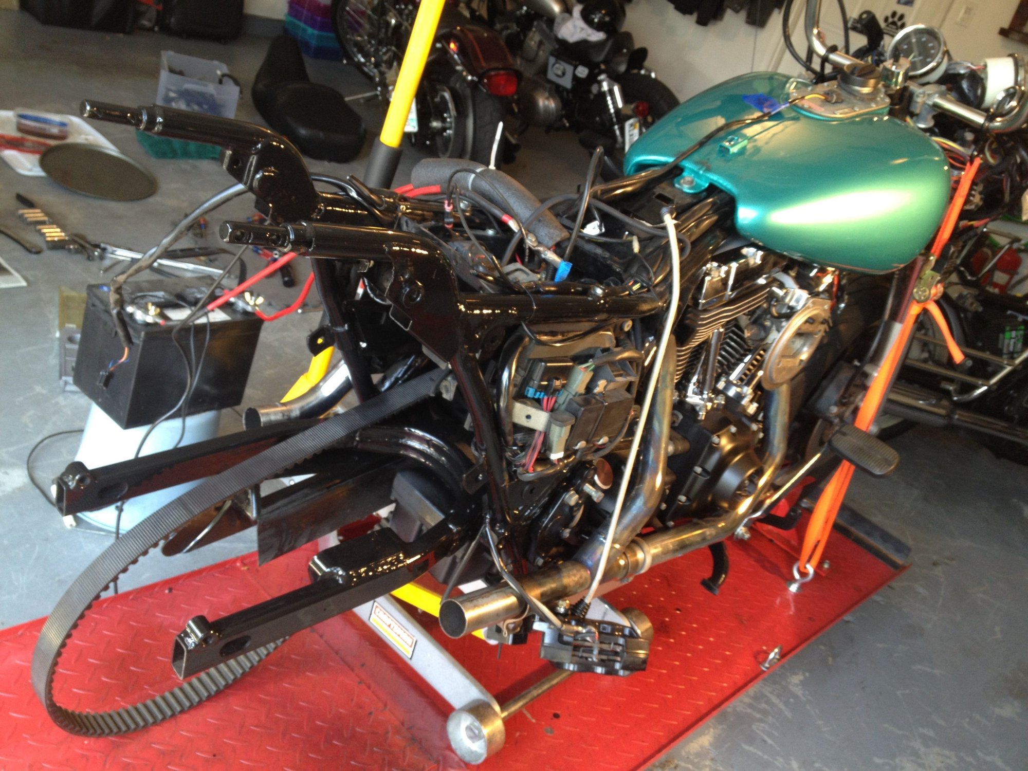 S.E 4" big bore 110 cylinders. S.E. 10.5 pistons. S.E. heads, S.E. 58mmTBI, S.E. billet cam plate,5.3 gram Injectors, Forged rocker supports, TP Roller Rockers, GMR 600 Cams, Woods Lifters, Axtell oil bypass valve, Red shift can tensioners, S.E. variable pressure clutch, COWBOY paint set, passenger foot peg, Extended reach footboards, Danny Gray seat, Mustache engine guard, Daymaker headlight, led auxiliary lamps, led tail lamp, aggressor wheels, M888 tires, Rider footboards, Highway pegs, tour pak. back rest, Speedometer/ Tachometer, Flush mount fuel cap & Gauge kit, 14" apes, Kuryakyn Mirrors, Boss blade levers, Led inserts rear turn signals, Bassani Head pipes, Rush mufflers, Arlen Ness grips, Progressive 944 rear shocks, Progressive mono tube cartridge, Chrome front fork kit, Axel nut covers, Wolo Bad boy air horn, S.E. Elite Heavy Beather, S&S pushrods, Live to ride side covers, finned head bolt bridge, Klock Werks windsheld, Turn signal button extnsions. I know I'm forgetting something!