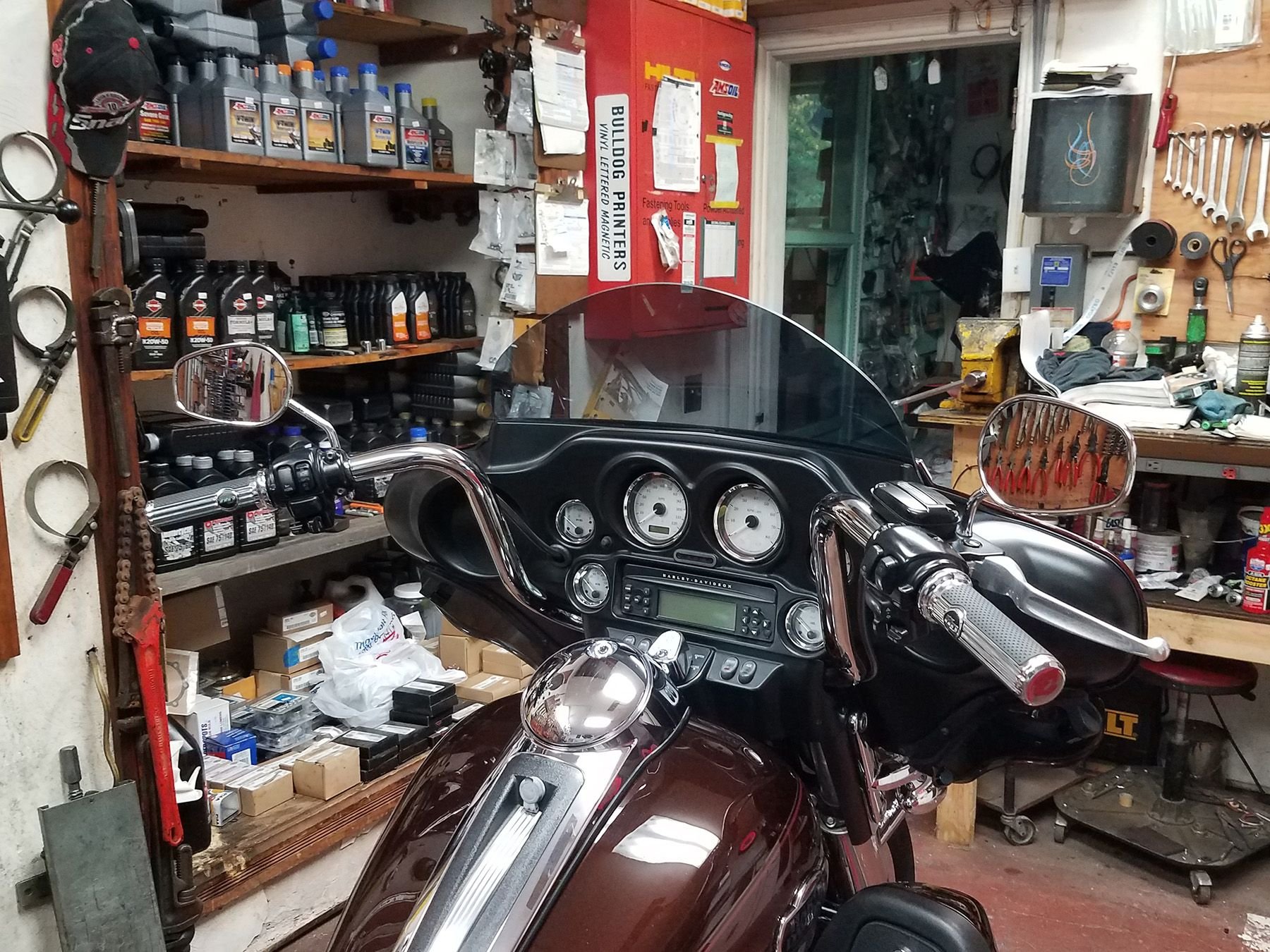 Is the clutch cable coming through a rubber grommet in the inner fairing next to the gauges? If so, is that how H-D ran the clutch cable on those bikes?