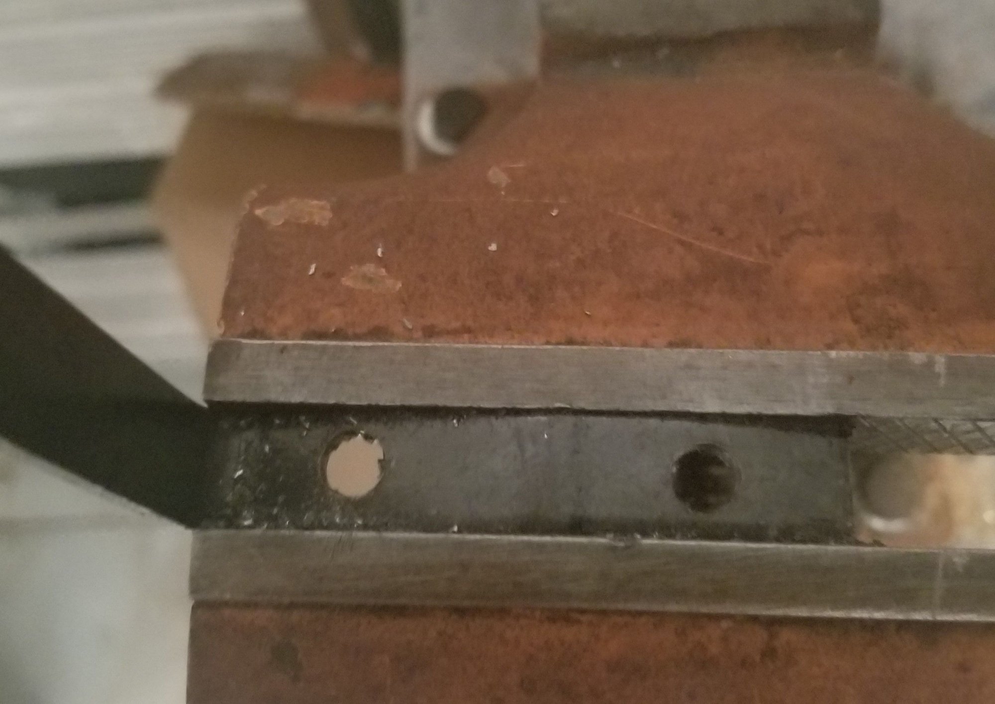 Step 6. I drilled two holes in the curved section for ¼ -20 Cap screws and lock nuts that will attach the mounting bracket to the plastic trim. The final installation will have rubber washers between the bracket and the plastic. The spacing was eyeballed approximately 1½ inches apart.