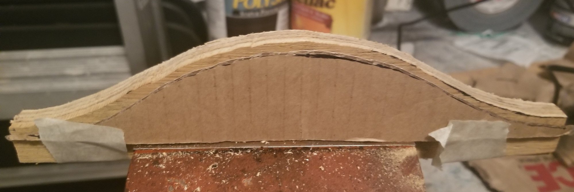 Step 2. I cut the cardboard and transferred the profile to a piece of scrap ½” thick plywood with a sharpie. Any piece of flat wood would work. Then cut the wood to the profile to use as a bending form.