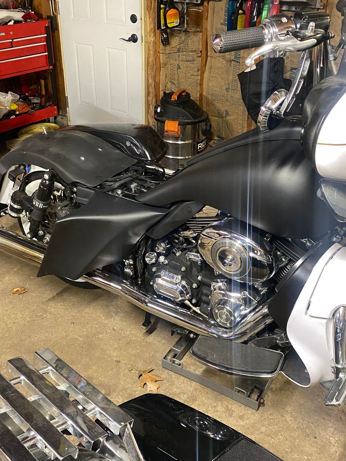 I have 2008 ULTRA I purchased a set 2014+ bags and purchased 2008 stretched side covers do to the fact of having true duel exhaust and the 2014 side covers will not fit around the exhaust I noticed that the side covers have to be heavily modified because of the spacing between the bags and side cover does anyone have any tips before I start this project???
