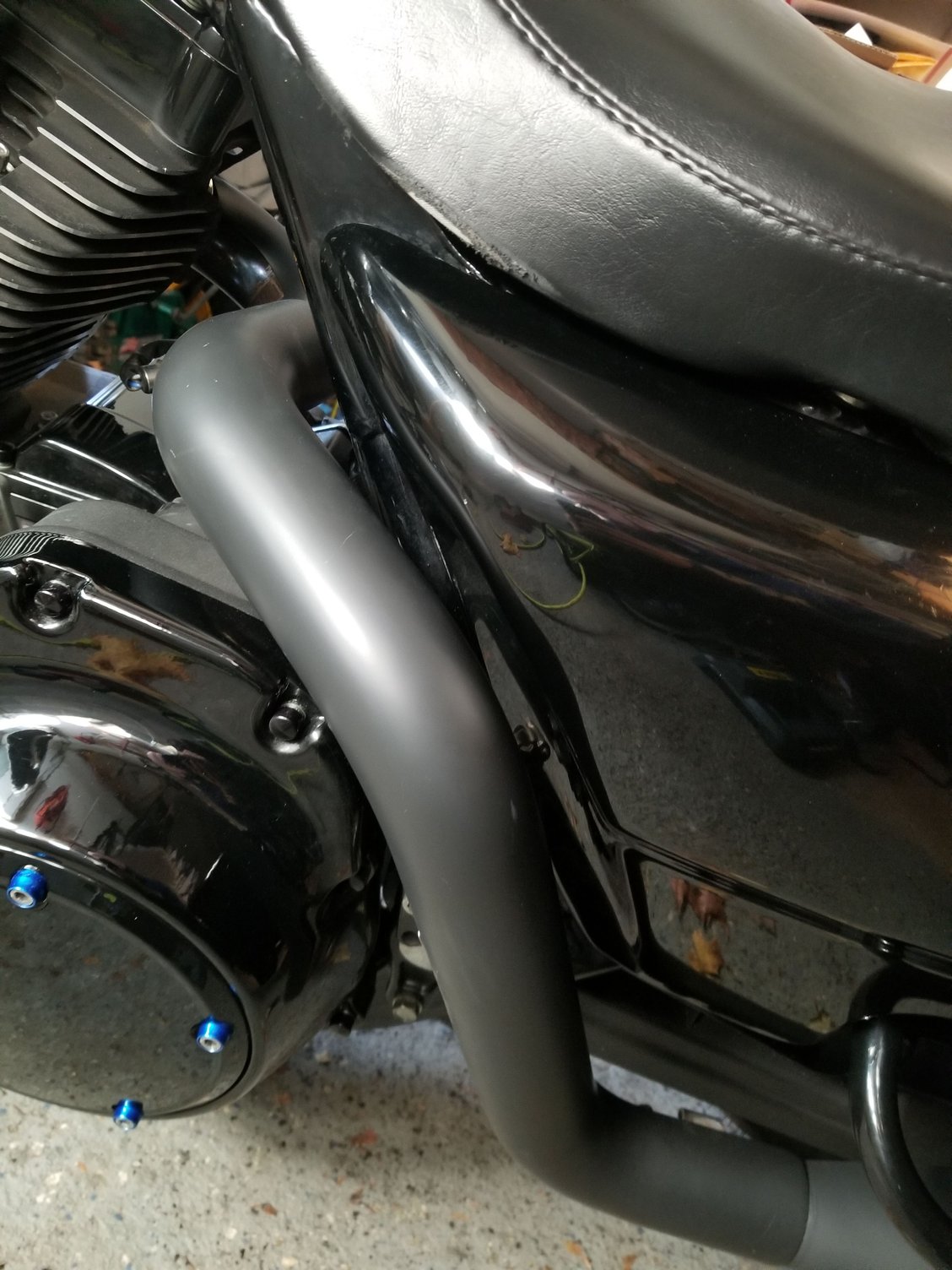 I know it's a year lateron this thread, but hoping for additional advise. How much clearance should you have between stretched side covers and exhaust heat shields or mufflers? Don't want to get to close and ruin a paint job.