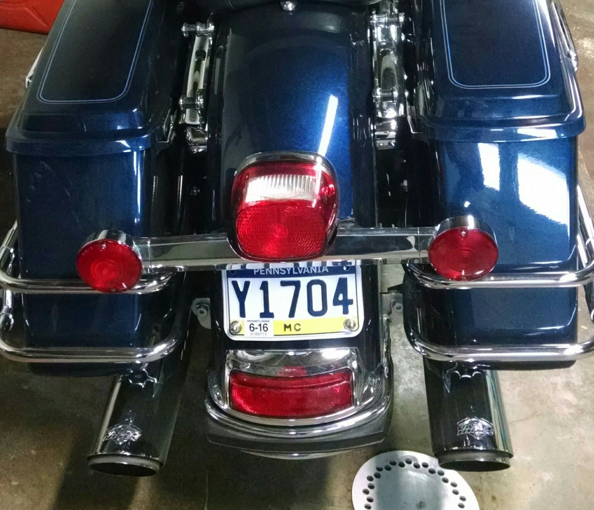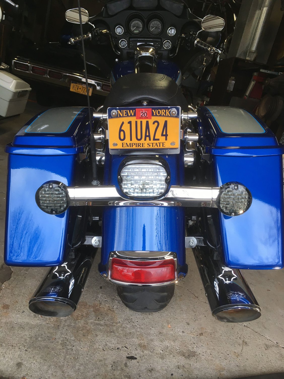 Finished this today, 2010 ElectraGlide Classic, I used a newer Road King light bar with factory license plate light and plate holder. Added bonus it's 2" narrower.