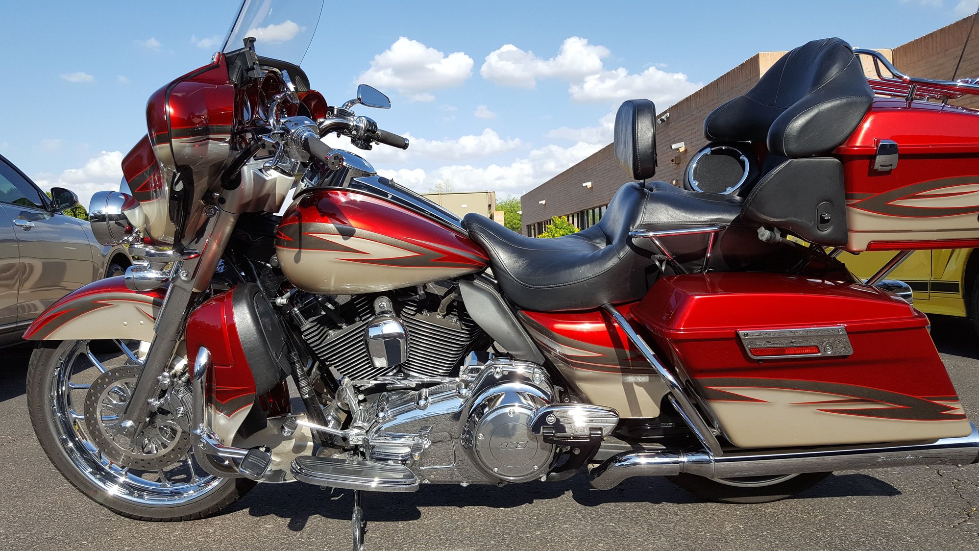 Went to look at the bike today. It's a gorgeous bike and extremely clean! With all the upgrades like the rear shocks, the quick disconnect tour pack and the luggage liners. Plus it comes with two seats and a whole lot more...
