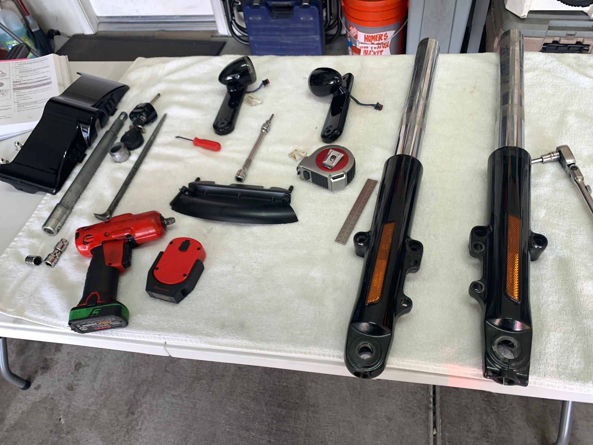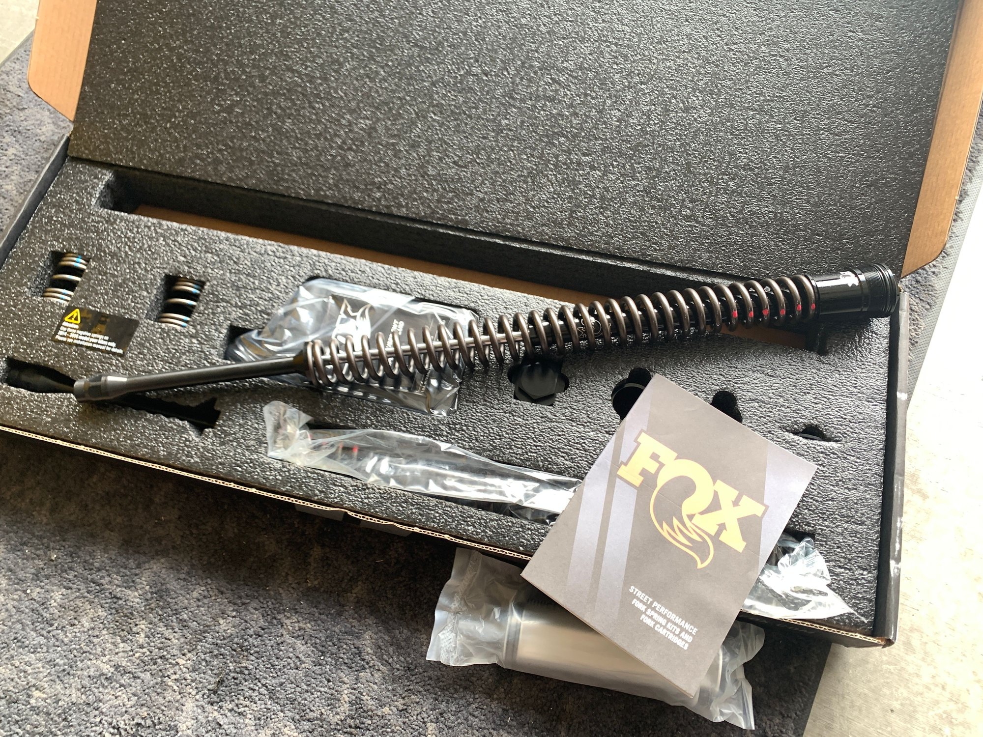 I did the front today - 30 minutes to tear it apart, 90 minutes to install the Fox components, 75 minutes to reinstall the fork legs because 2 friends showed up and we BS'd while I was working.