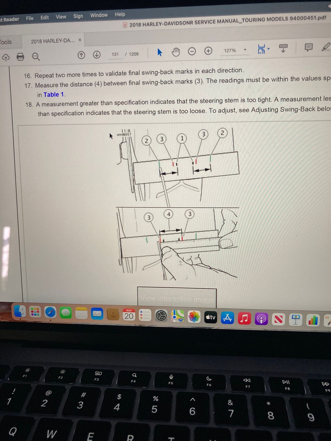 I have a 2018 Ultra Limited with 20K that I am unable to get the steering head bearing adjusted. When I perform the swing-back IAW the service manual I can't get the 3rd mark to fall in between the 1st and 2cd mark. View attached picture for explanation. Could it be that the bearings are bad. I know that I have done everything IAW the service manual to prep the bike correctly such as making sure the bike is level front to back side to side and all add on accessories are off in order that they not affect the procedure. Any help or explanation would be appreciated.