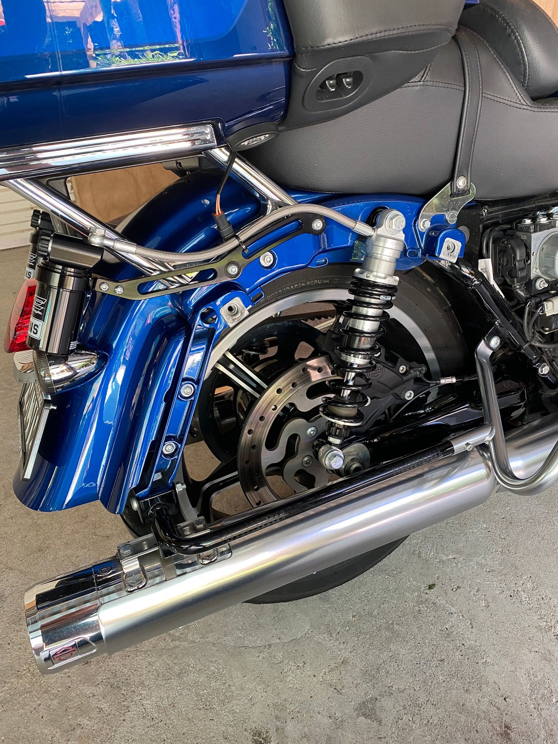 These could be easily mounted low behind the bags using hose clamp style clamps , seen it on several bikes before these were introduced. This could be a recognition thing for Harley as well as in " Look what the new Harley's are using " type thing.