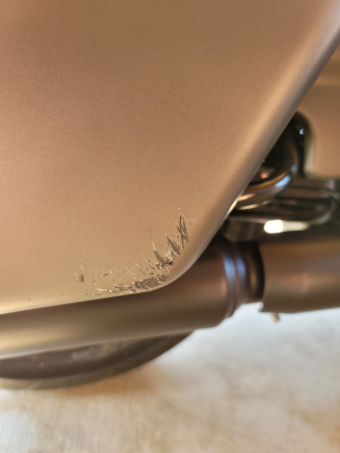 I had a scrape on the bottom my right bag. I have the Hot Rod Red Flake. Expensive repaint and hard to match. I had my Indy fix the scrape and paint a vivid black stripe on both bags. So, when I drop it again, vivd black is so much cheaper with no matching issue.