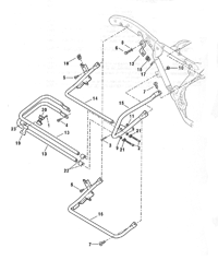 I replaced the original receptacle #18 and Bail Head Stud #28 with 3/8-20 threaded clip nuts and 3/8" allen head screws (this makes the bags harder to steal) If you do this, you can add a washer/spacer and longer screws to space your bags out at the top, away from your shocks.