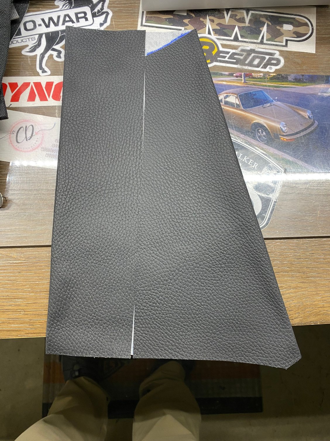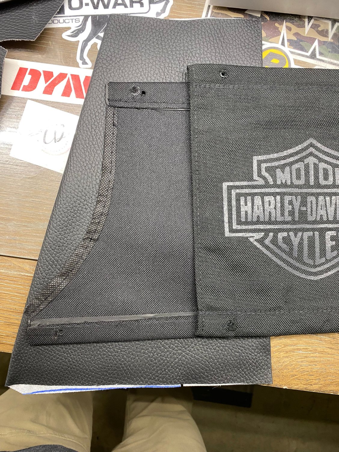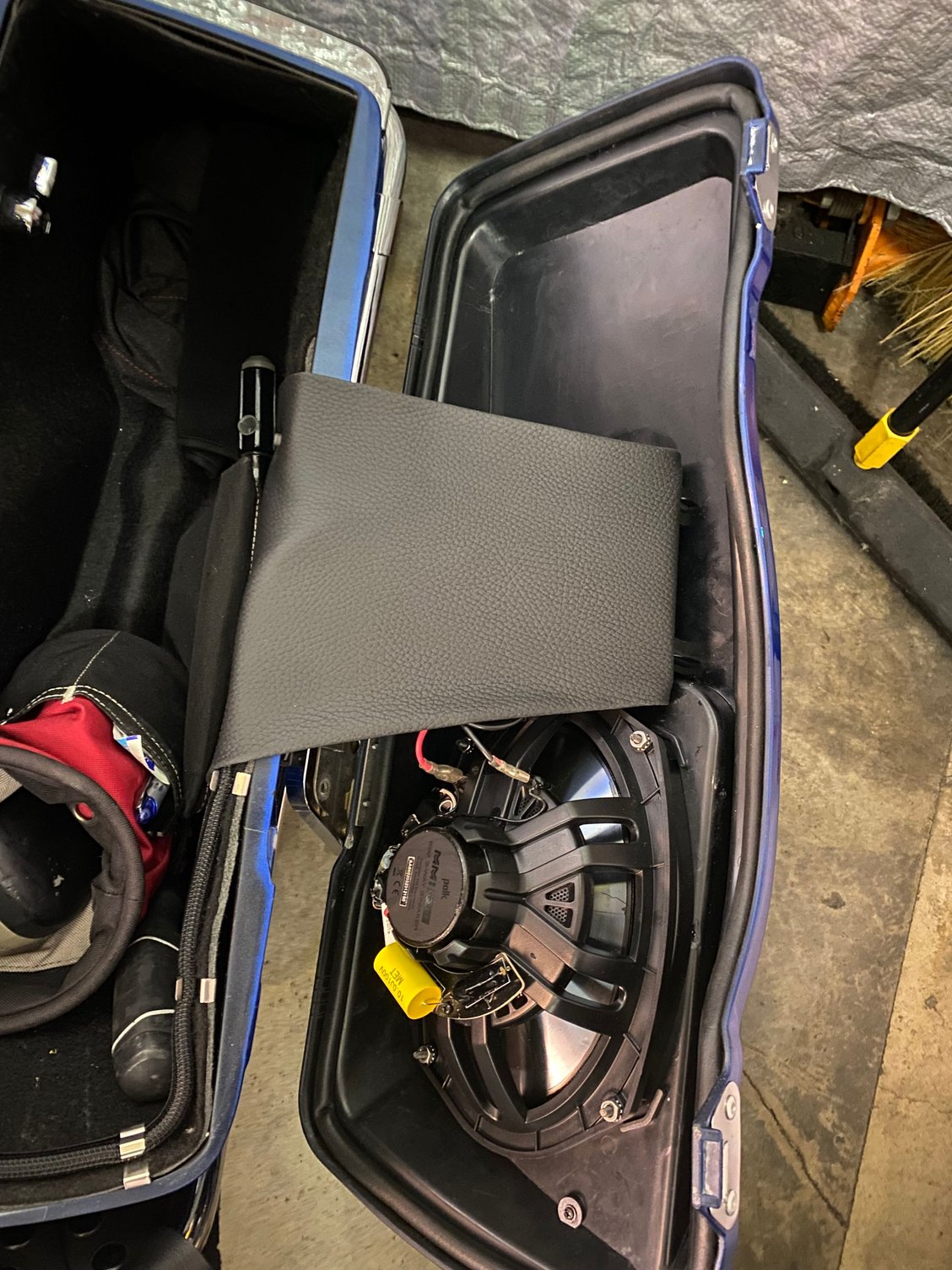 I wasn’t liking the tethers that came with my speaker lids, so I made a new pair out of the same vinyl used on the seat.