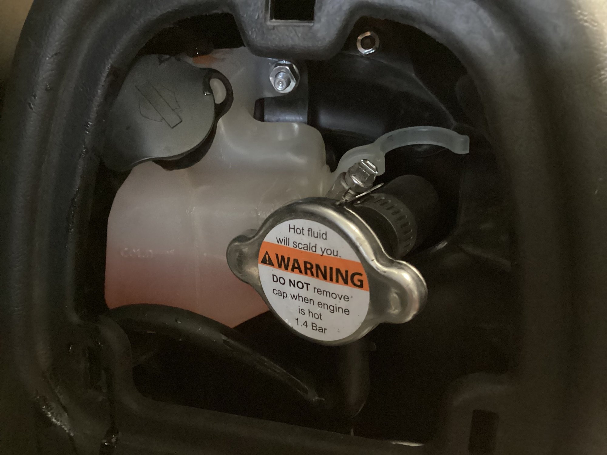 Sorry gents it doesn't have a radiator cap it has a plug in a reservoir . If you over fill the tank it will blow it out. they're a little finicky about coolant level. put tape over the hot light and ride it. It will not hurt a thing...