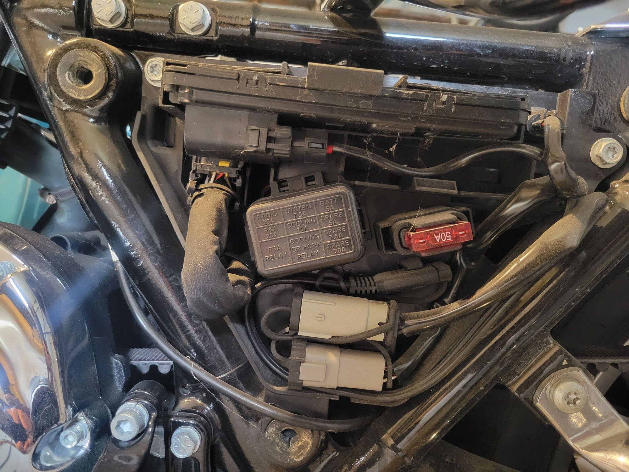 I have a Y-connector attached on my 2013 King. One is for a USB power port going to my bars and the other is used to power my detachable batwing.